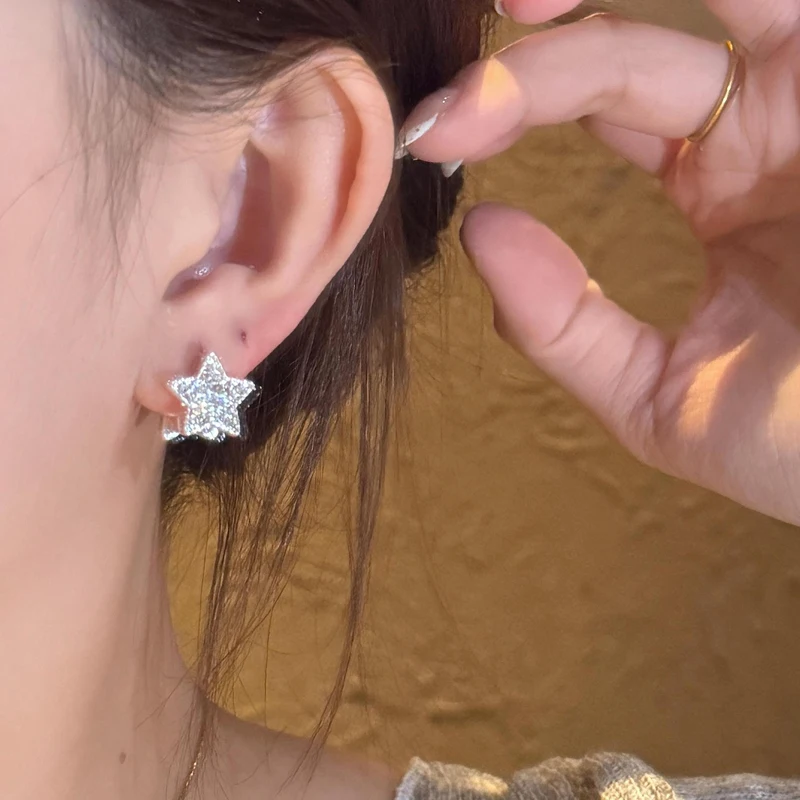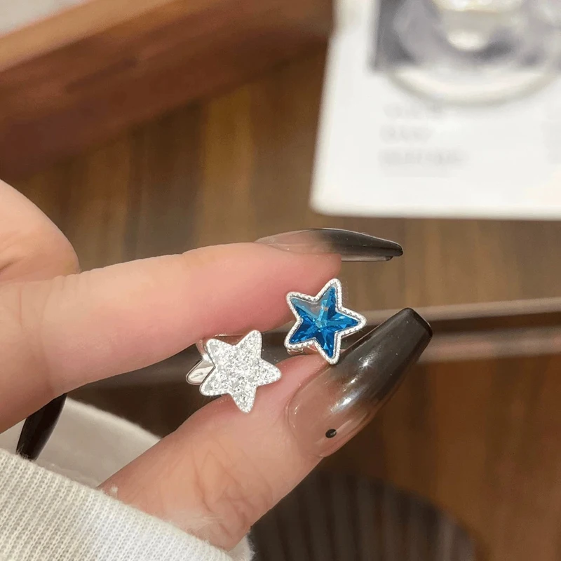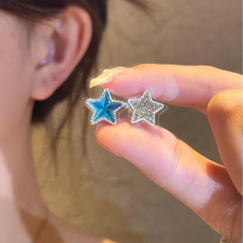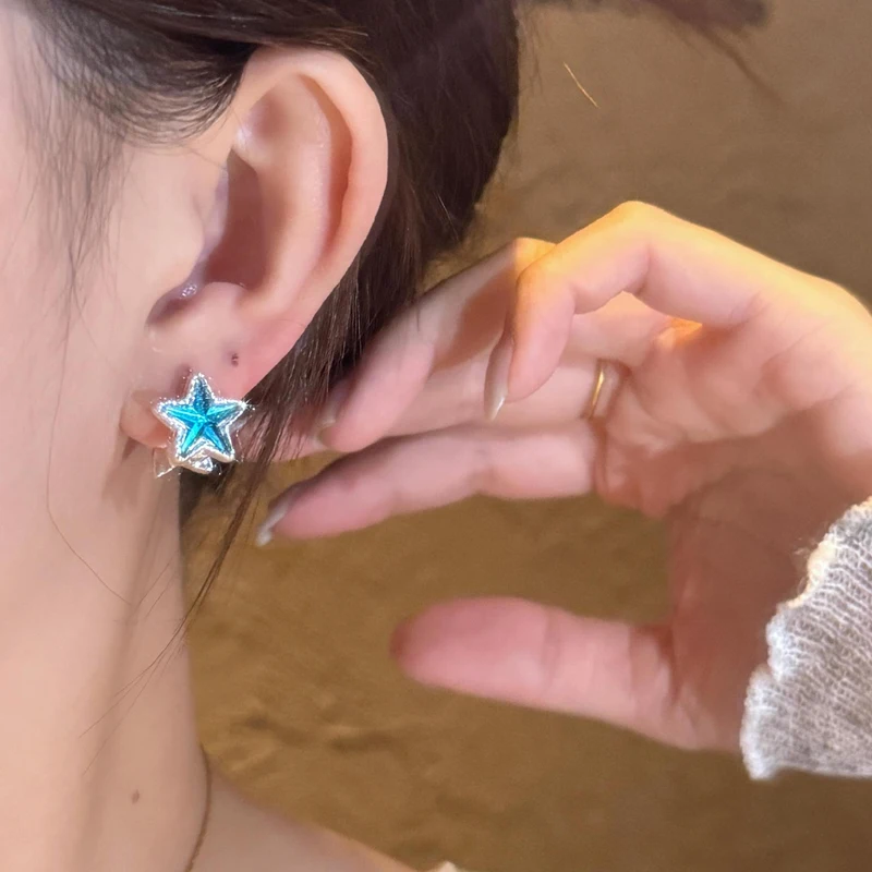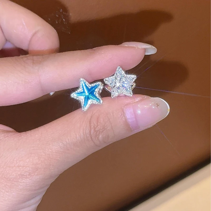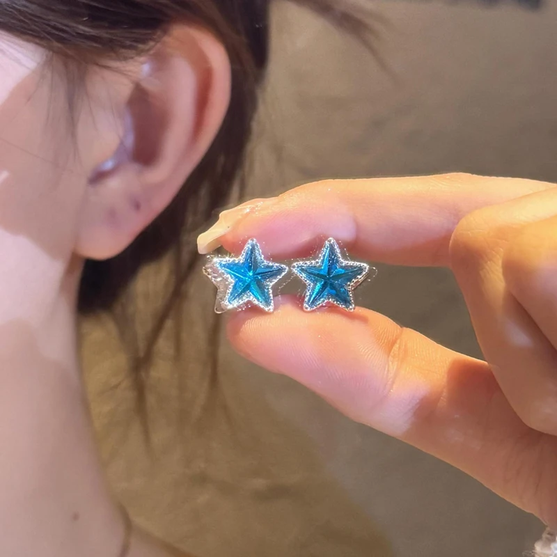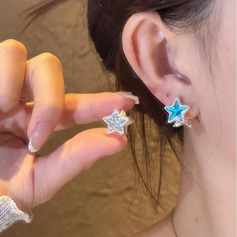 Daiiibabyyy Two-Sided Blue Zircon Star Hoop Earrings for Women Exquisite Sweet Dangle Earrings Fashion Simple Versatile Jewelry Daily Gifts