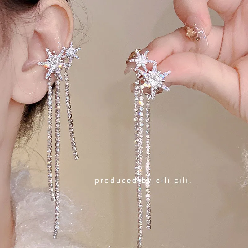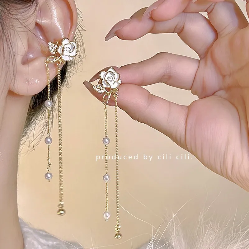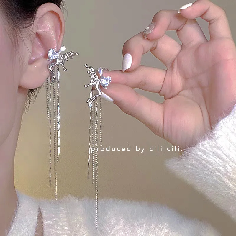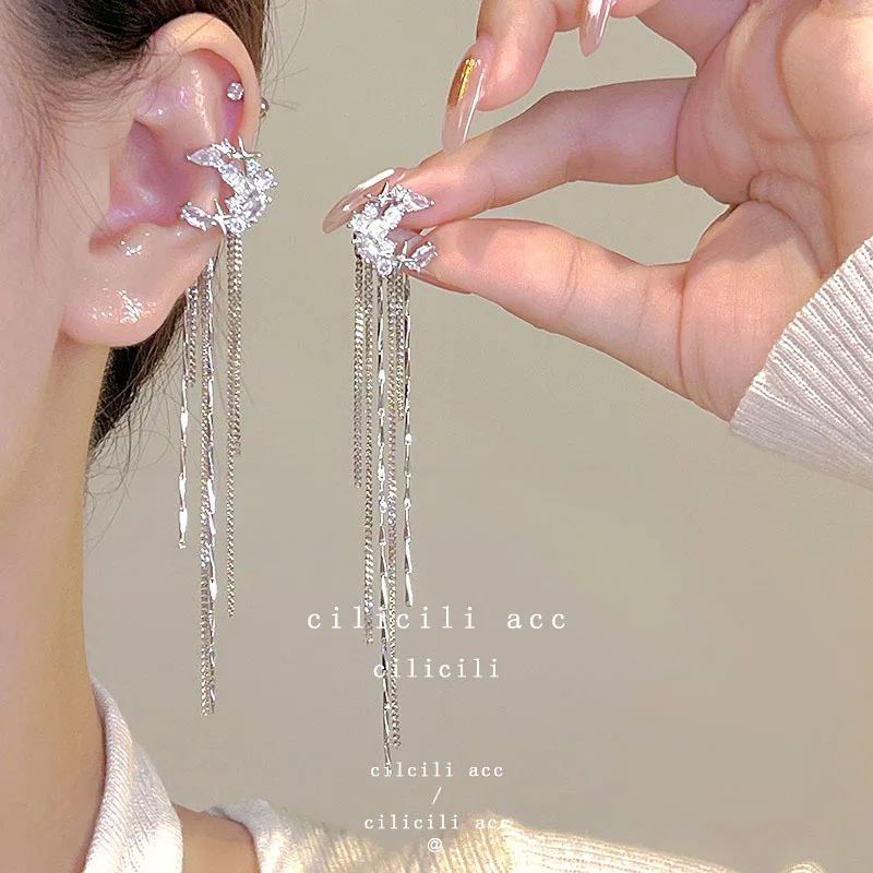 DAIIIBABYYY - Women Fairy Korean Fashion Butterfly Star Bow-knot Ear Clip Earrings Rhinestone Long Pearl Tassel Drop Ear Cuff Jewelry