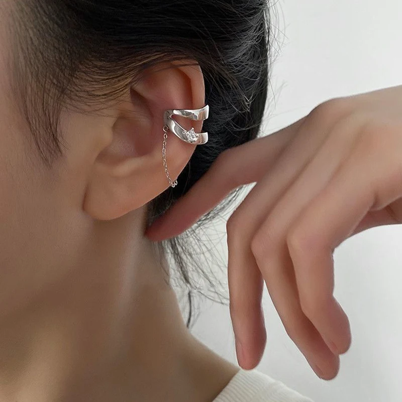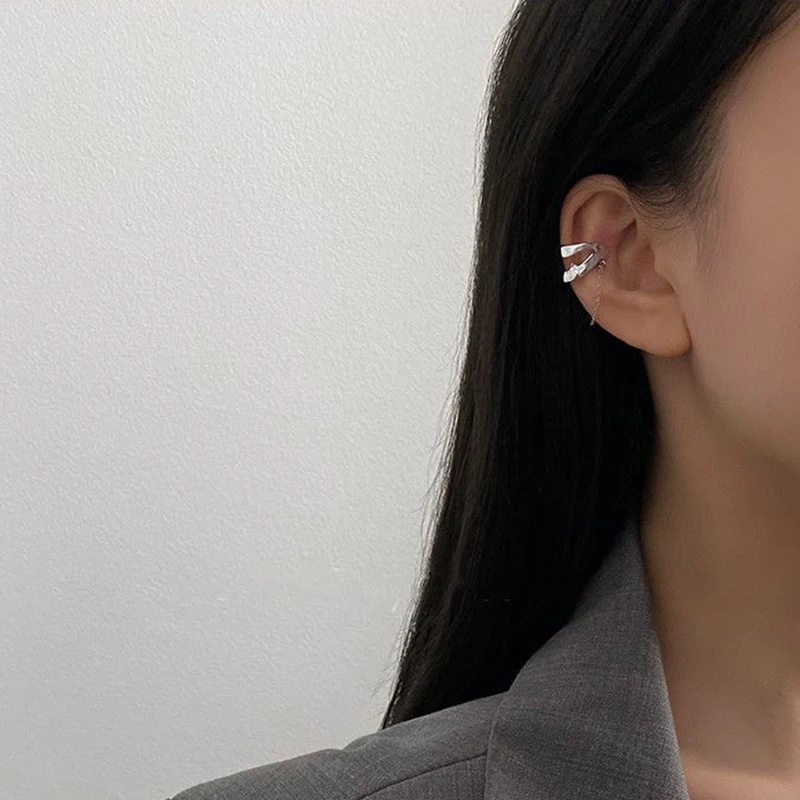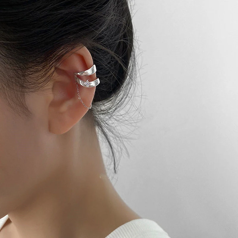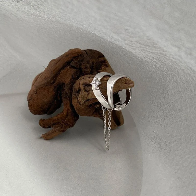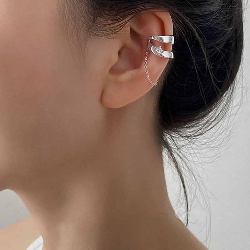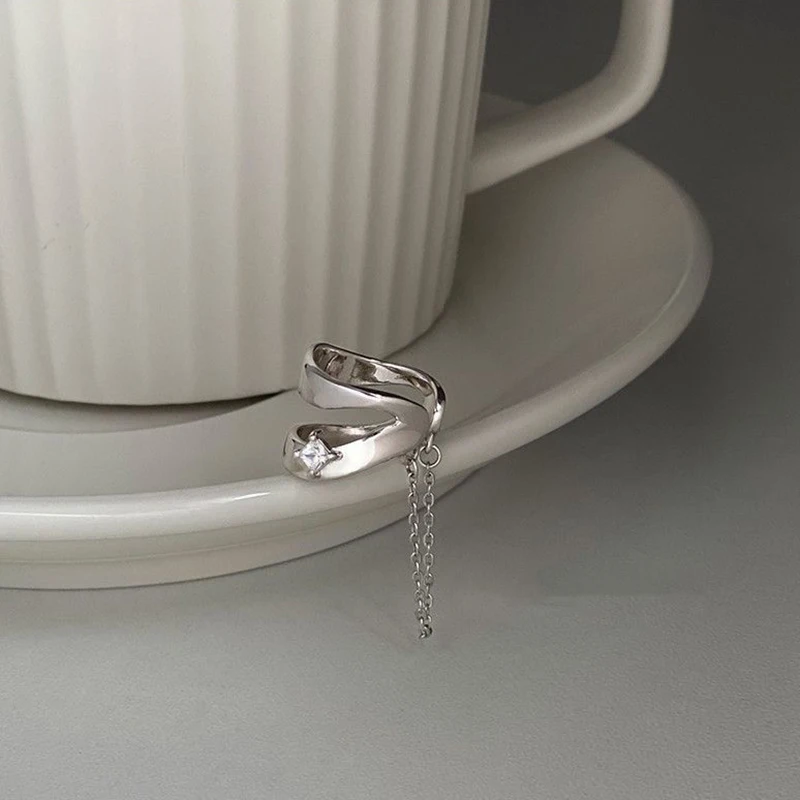 DAIIIBABYYY - Y2K Double Layer Zircon Tassel Chain Non Pierced Clip On Earrings Silver Color Ear Accessories Earcuff Fashion Jewelry Gifts