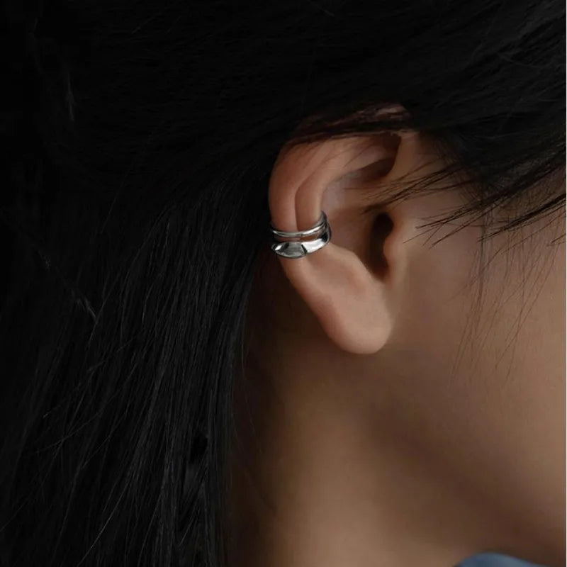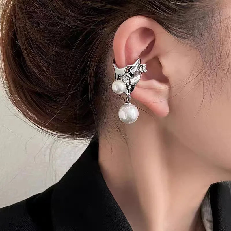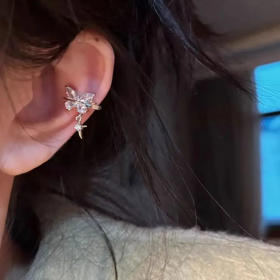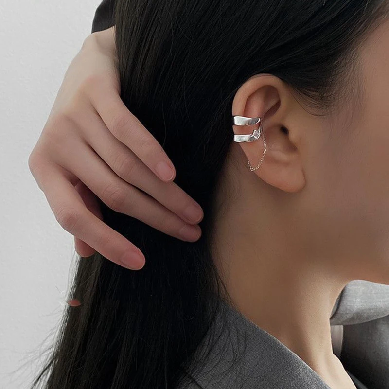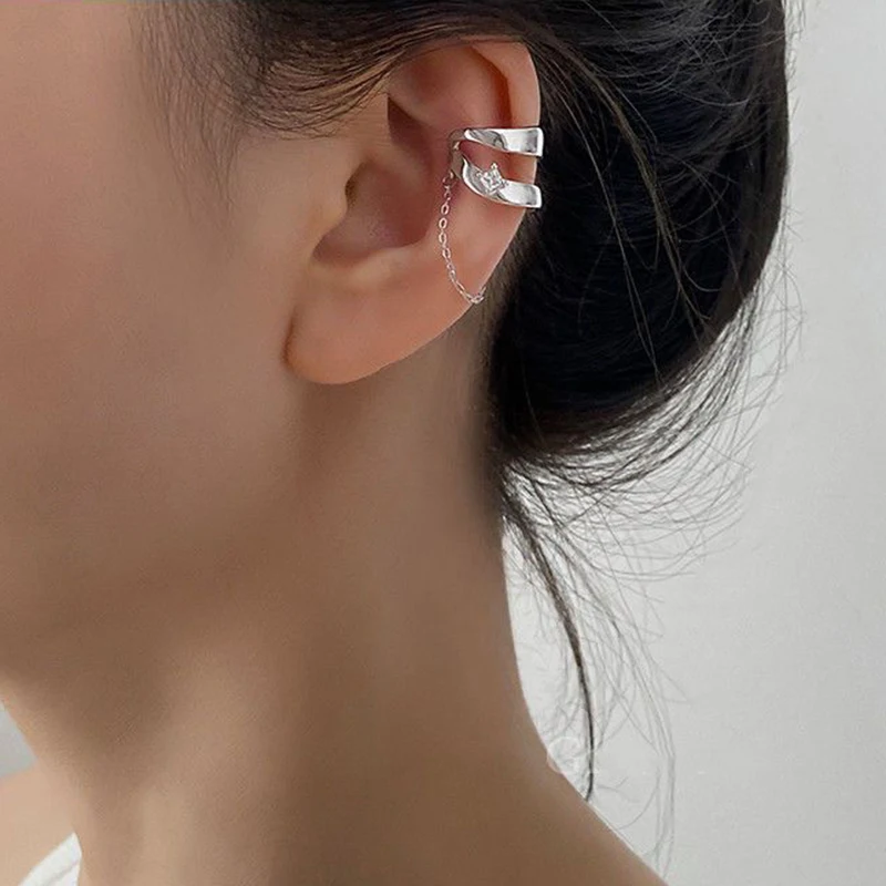 DAIIIBABYYY - Y2K Double Layer Zircon Tassel Chain Non Pierced Clip On Earrings Silver Color Ear Accessories Earcuff Fashion Jewelry Gifts