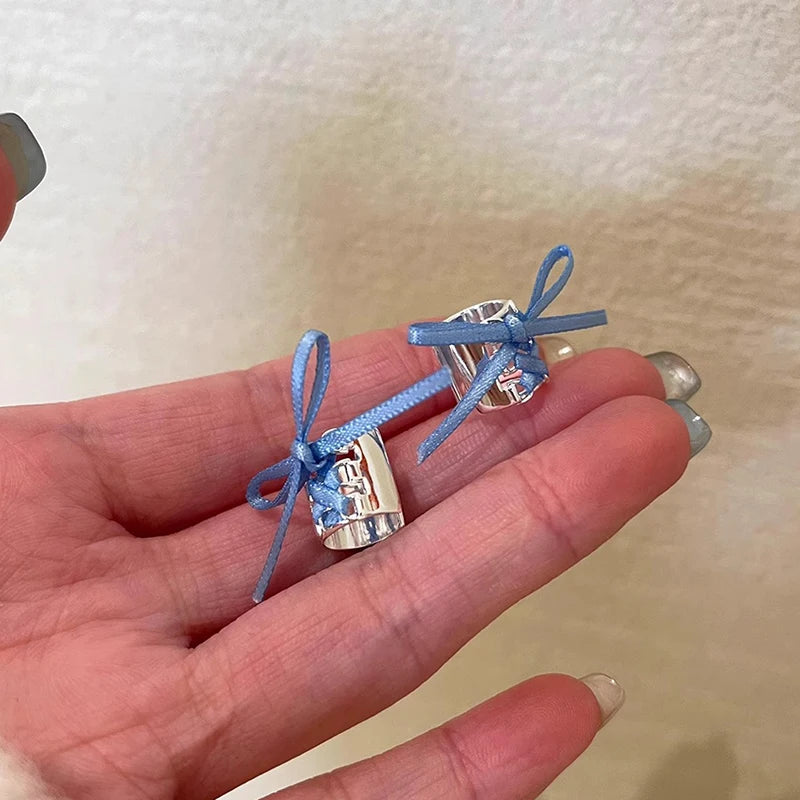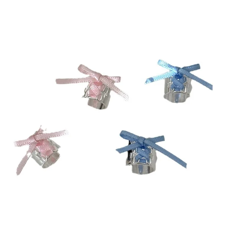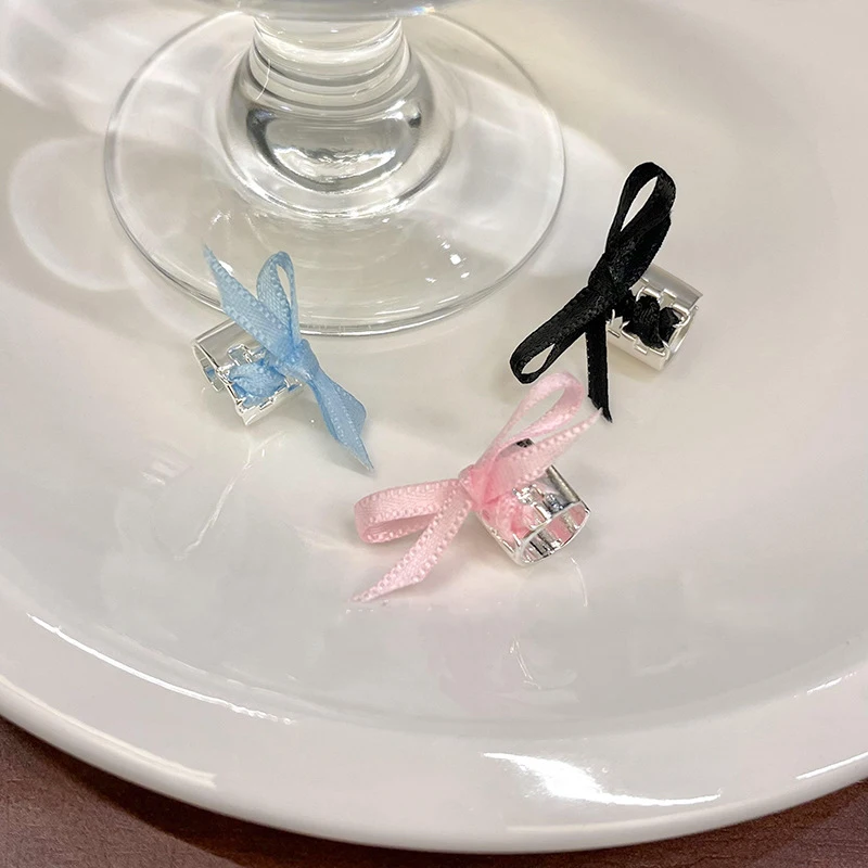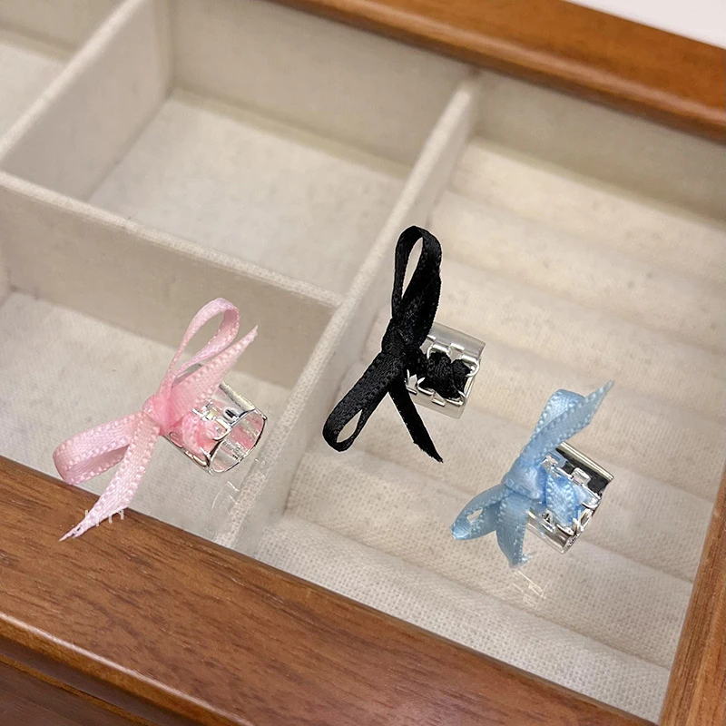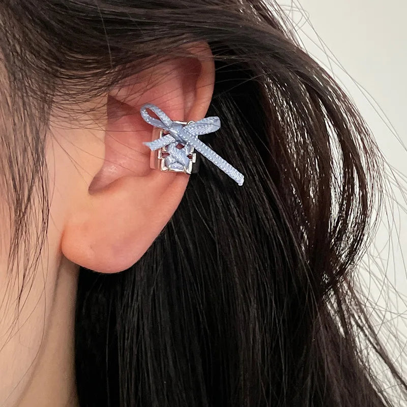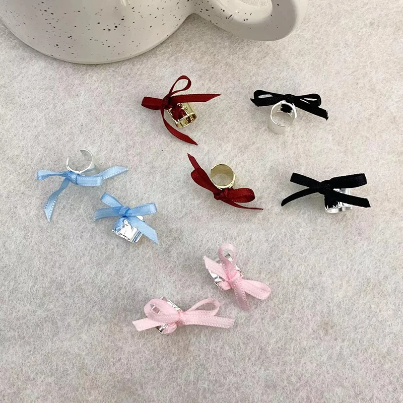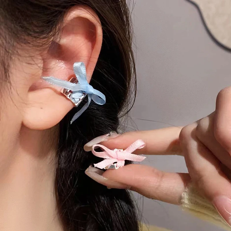 DAIIIBABYYY - Y2K Style Ribbon Pink Bow Ties Clip Earrings for Women Girls Sweet Cool Korean Charm Girls Ear Bone Clip Fashion Jewelry Gifts