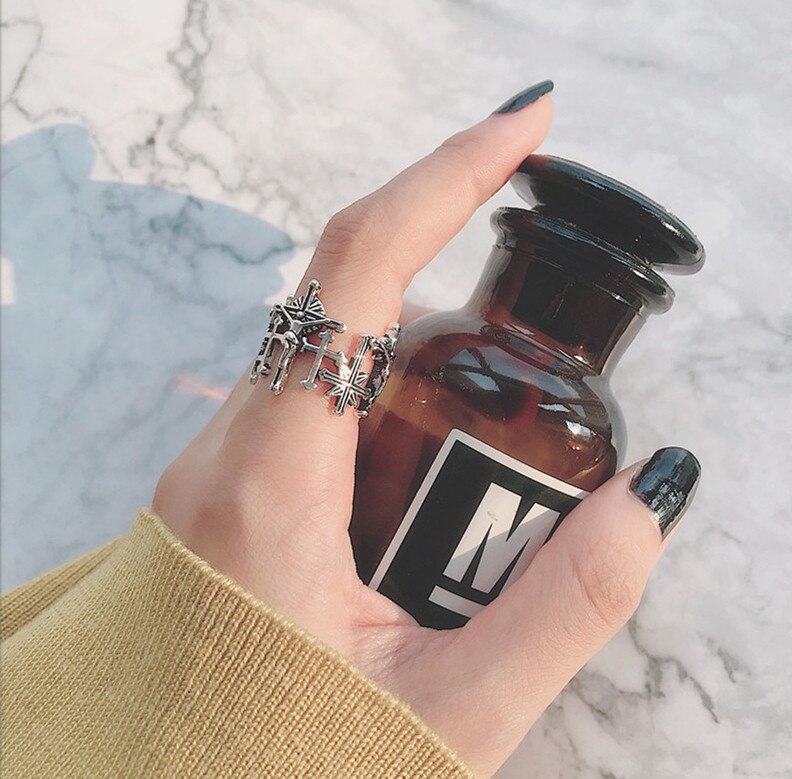 Punk Cool Hip Pop Multi-layer Adjustable Chain Four Fingers Open Alloy Women Rotate Rings for Women Party Gift
