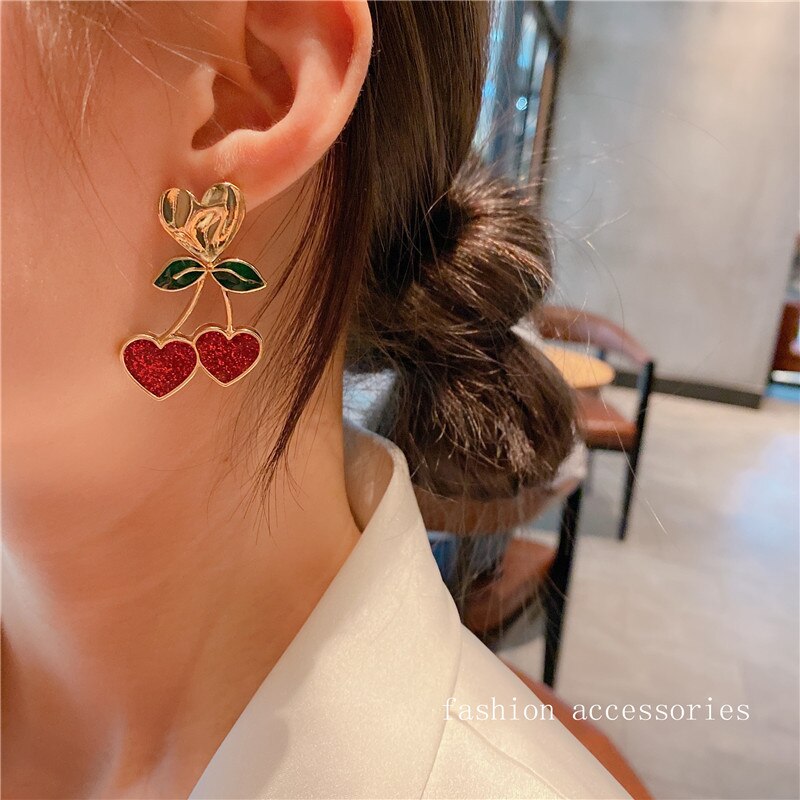 Sweet Cute Crystal Red Heart Cherry Drop Earrings For Women Girls Fashion Temperament Jewelry Charm Dangle Earrings Brincos Gift