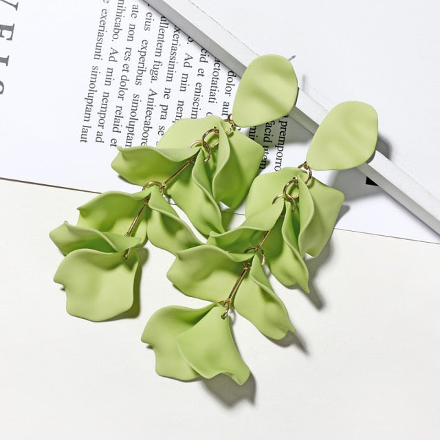 XIYANIKE New Long Tassel Rose Flower Petals Dangle Earrings Women Fashion Exaggerated Pearl Zircon Drop Earrings Jewelry