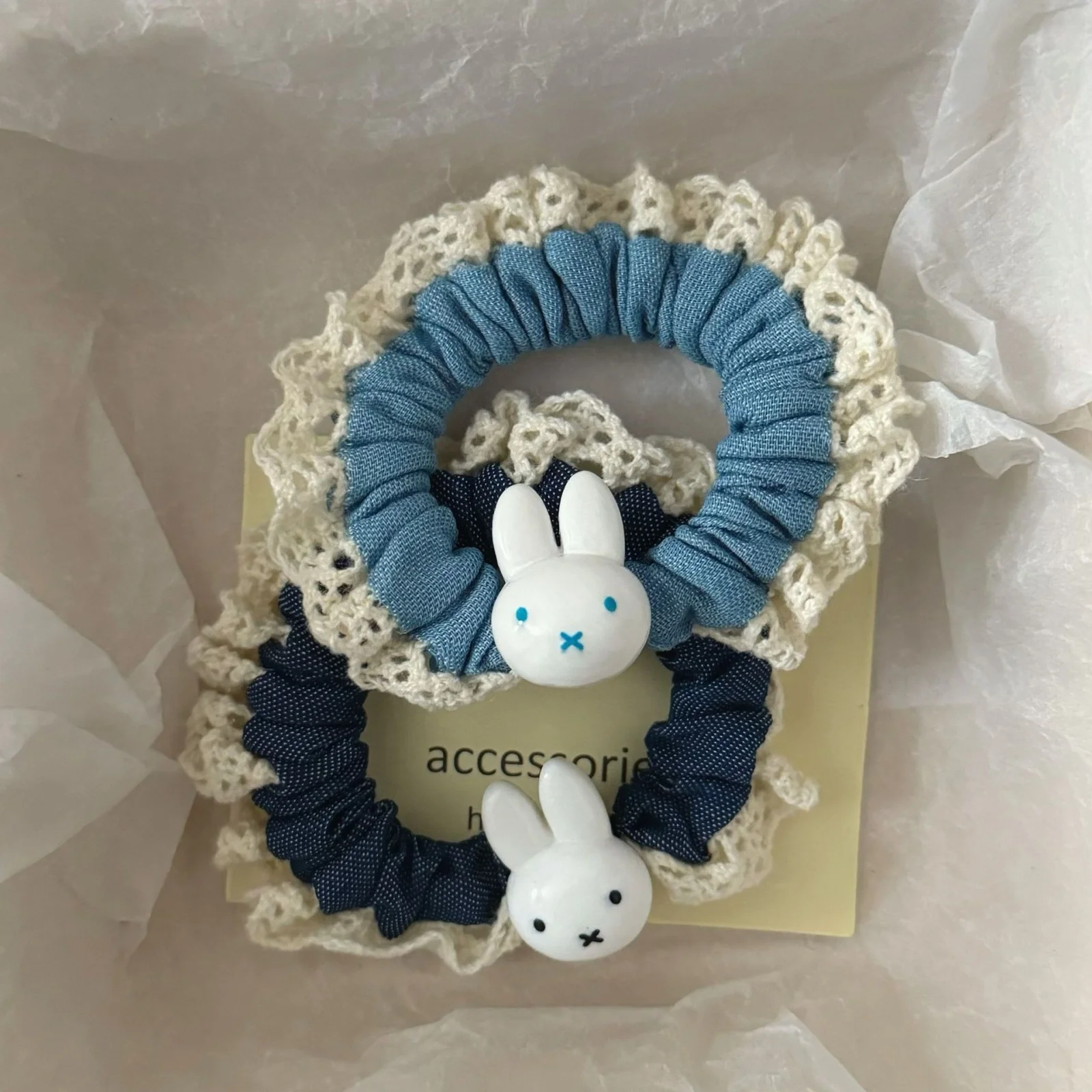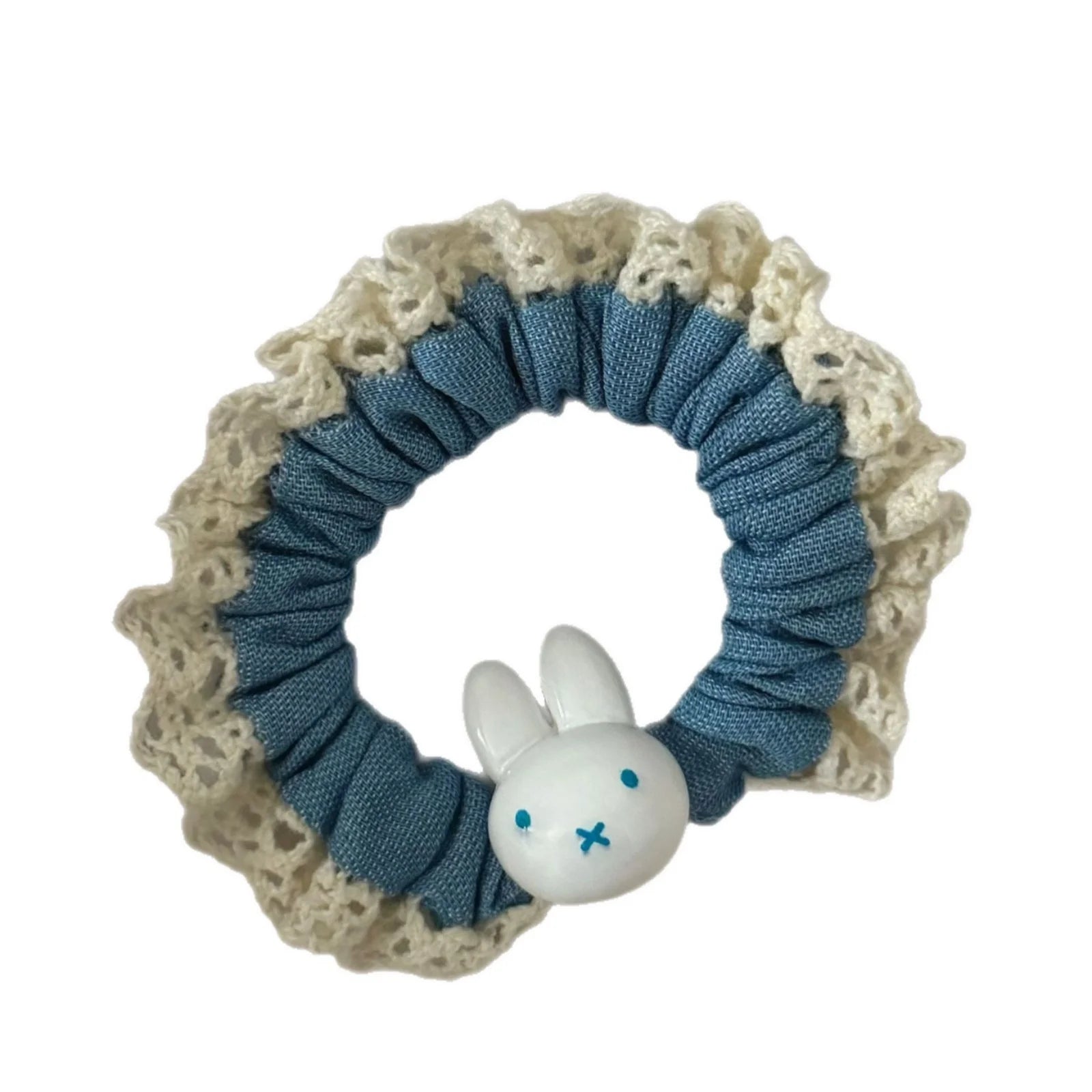 Daiiibabyyy 1PC Blue & Navy Rabbit - Decorated Scrunchies, Lace - Edged Hair Bands, Lovely Hair Accessories for Women