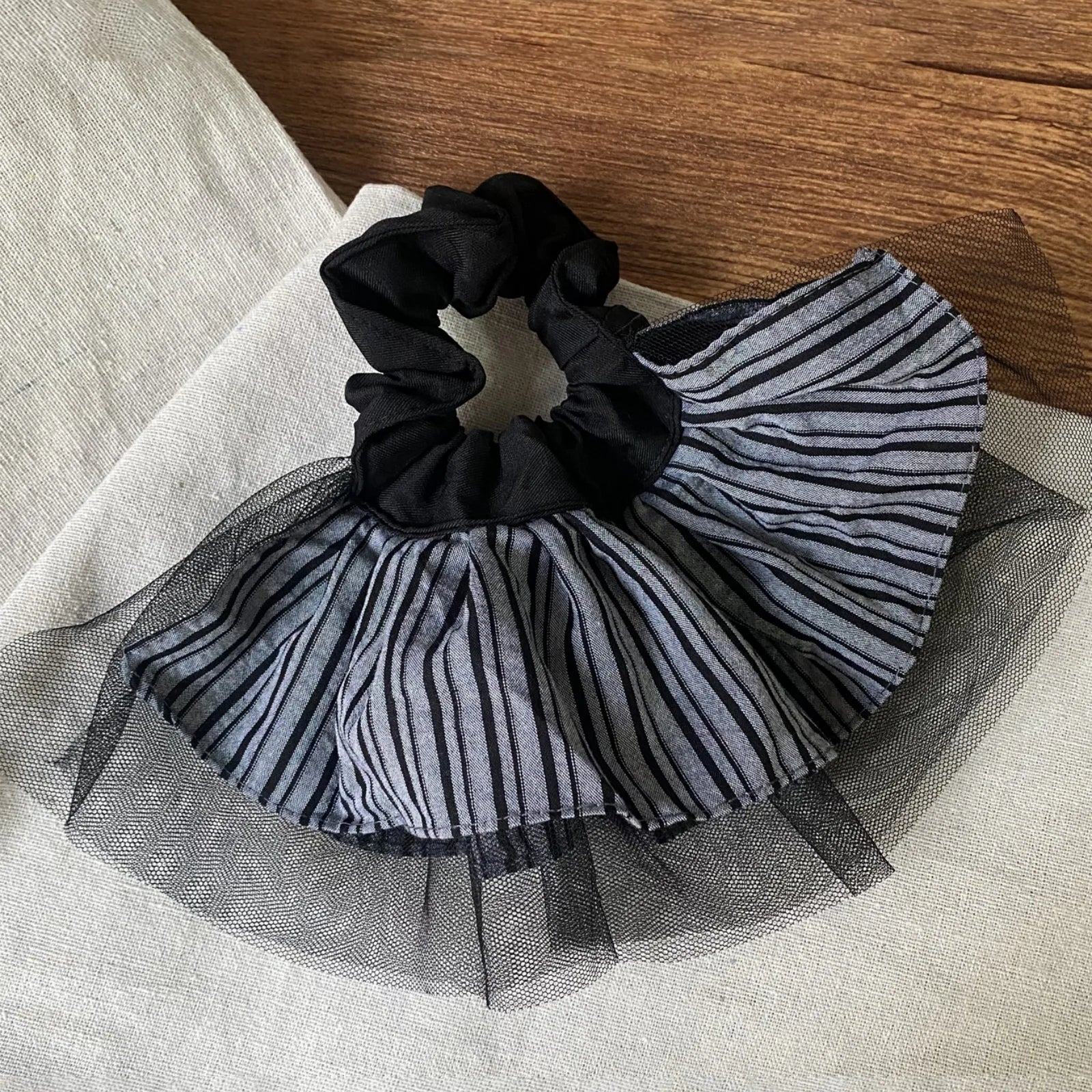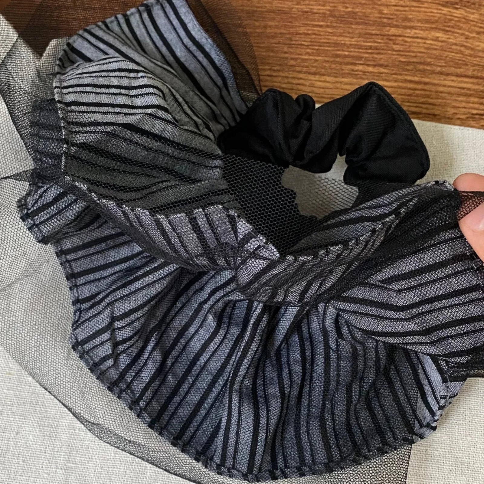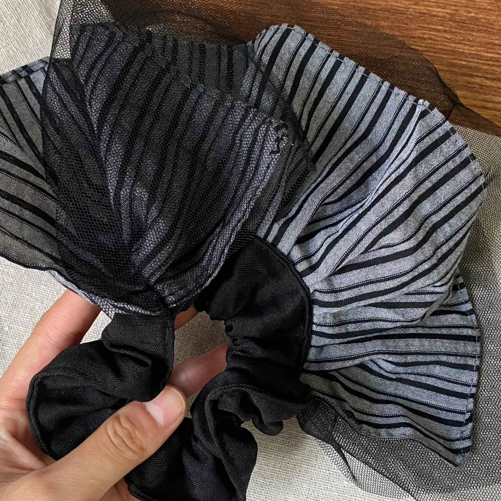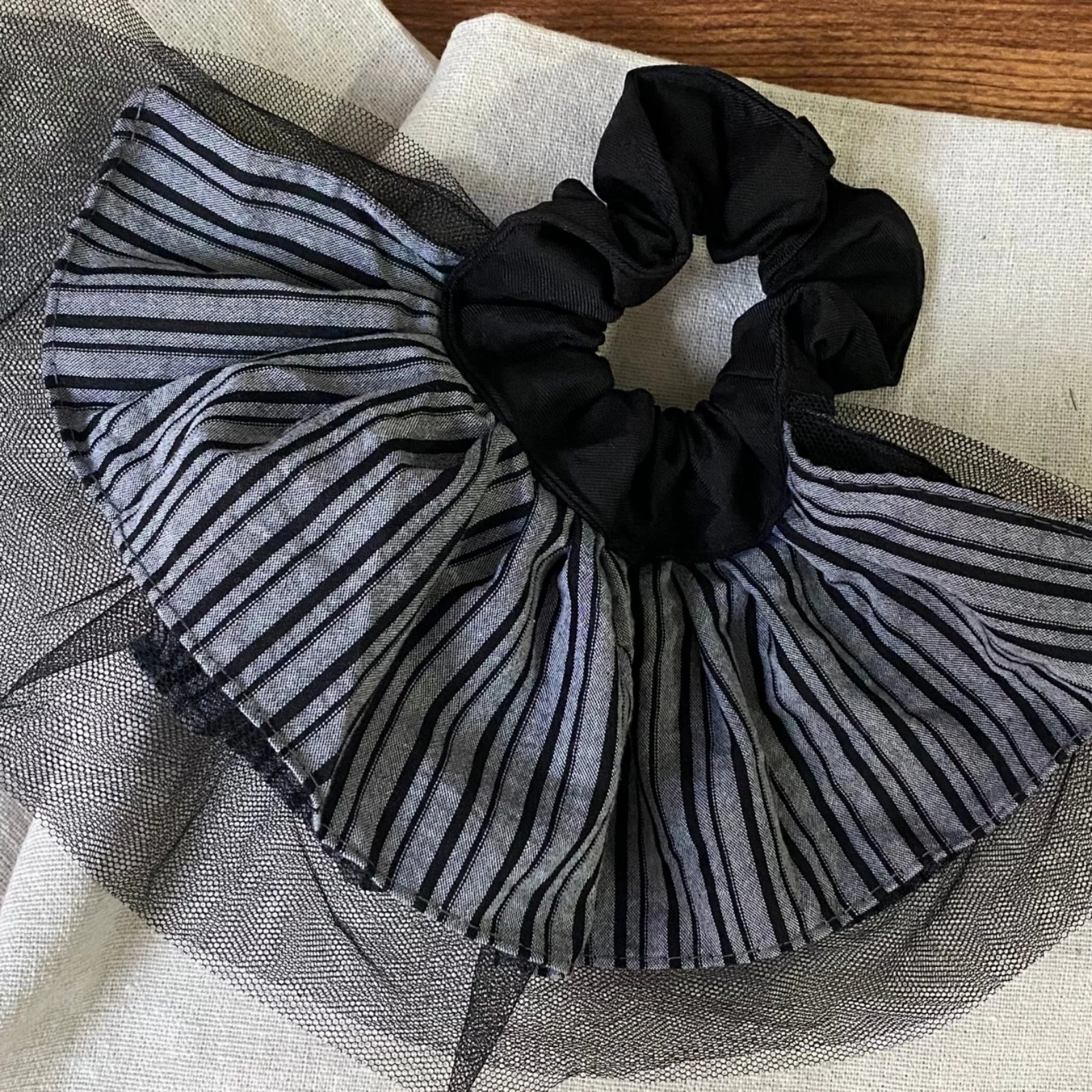 Daiiibabyyy 1PC Scrunchies Women's Striped Mesh - Trimmed Hair Accessories Elastic Hair Ties, Chic for Daily & Party, Perfect Gift
