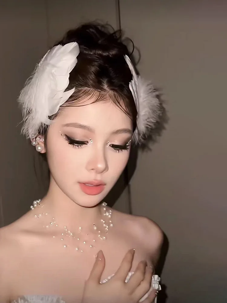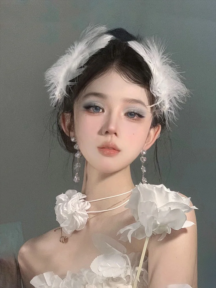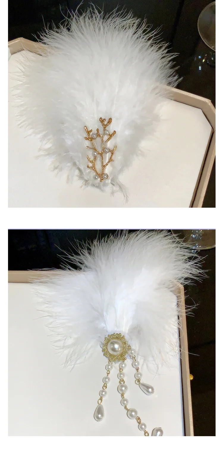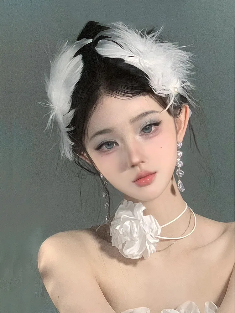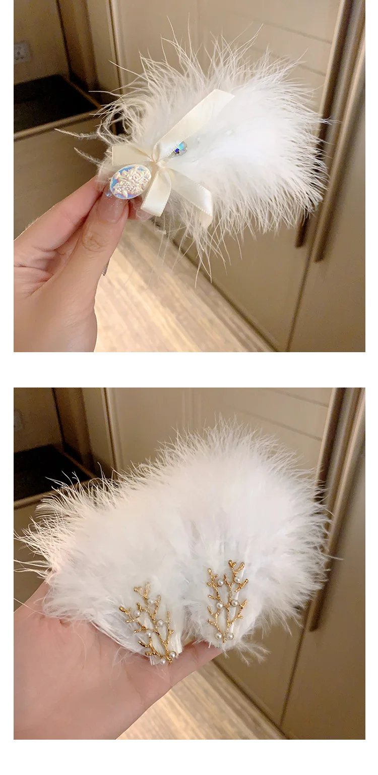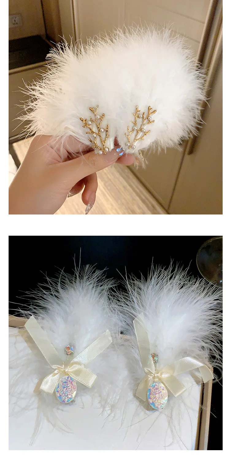 Daiiibabyyy  2Imitation White Swan Feather Hair Clips Elegant Ballet Headwear Bride Hair Accessories Sweet Princess Hairclips for Women Girls