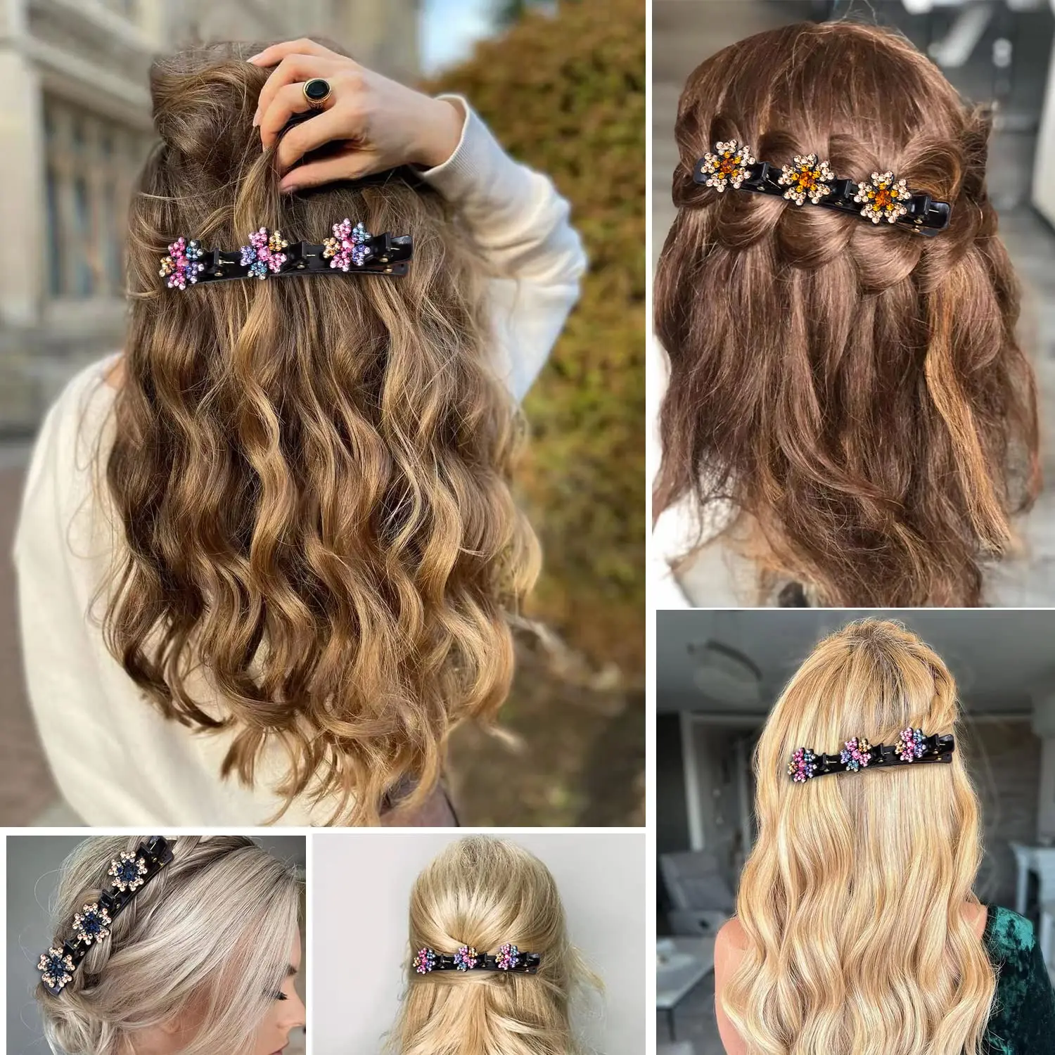 Daiiibabyyy 8pcs Sparkling Crystal Stone Braided Hair Clips for Thick Thin Hair, Girls / Women Hair Accessories for Styling Sectioning