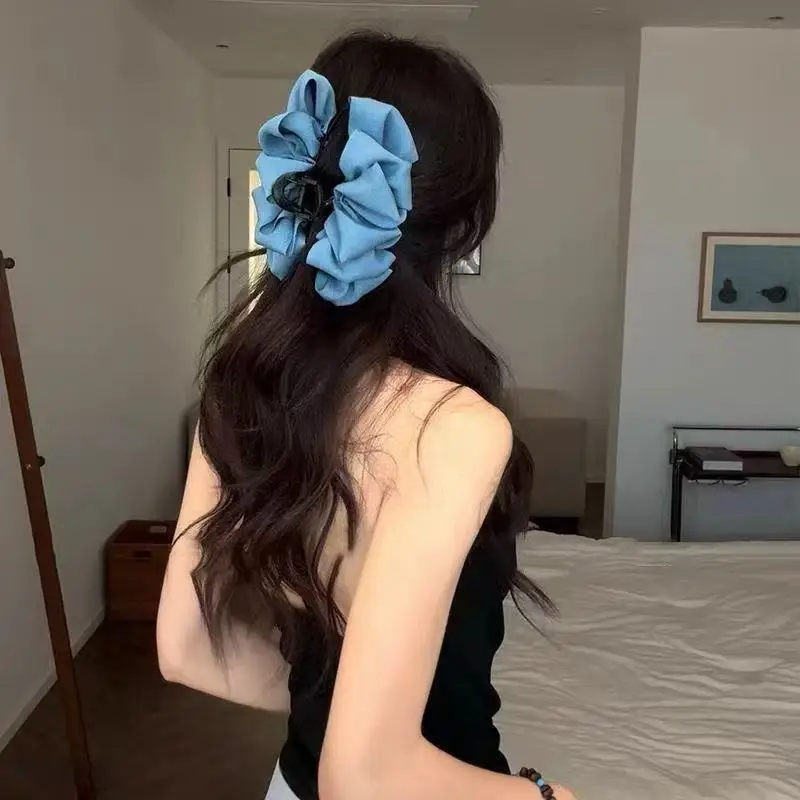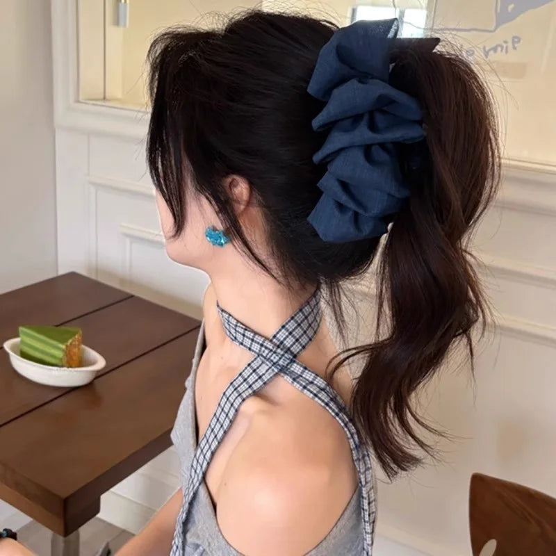 Daiiibabyyy Blue Shark Clip Denim Heavy Cloth Hairpin Female Elegant Temperament Fashion Female Hairpin Hair Accessories