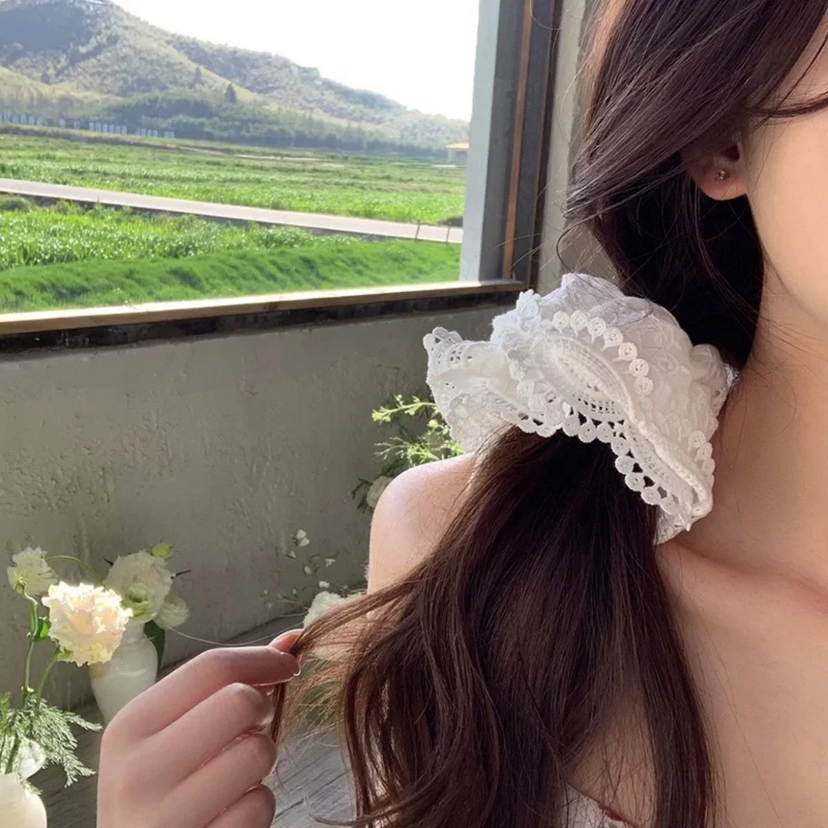 Daiiibabyyy Gentle white lace hair band with wavy edge women's large intestine ring tied hair new high-end headband hair accessories