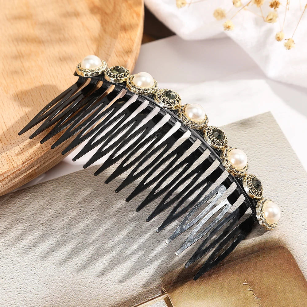 Daiiibabyyy Haimeikang Fashion Ponytail Clip Hair Combs Women Rhinestone Pearl Barrettes New Hair Maker Bun Hair Accessories Hairpins