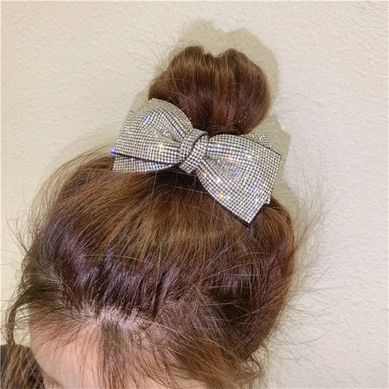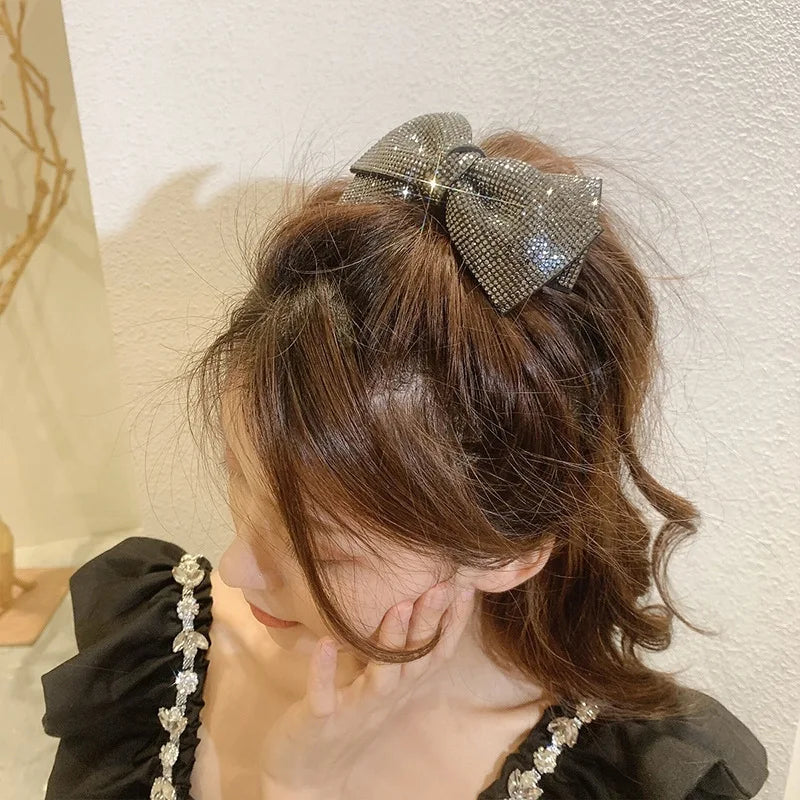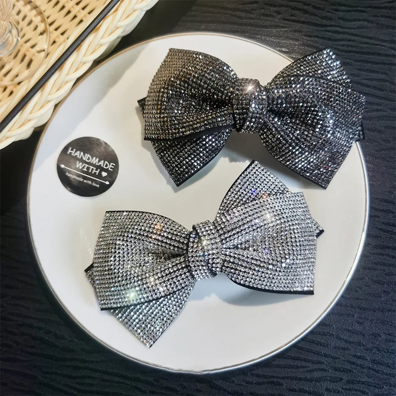 Daiiibabyyy luxury brand Hair accessories Korean jewelry double-layer bowknot headpiece with Rhinestone spring clip sweet hair clip