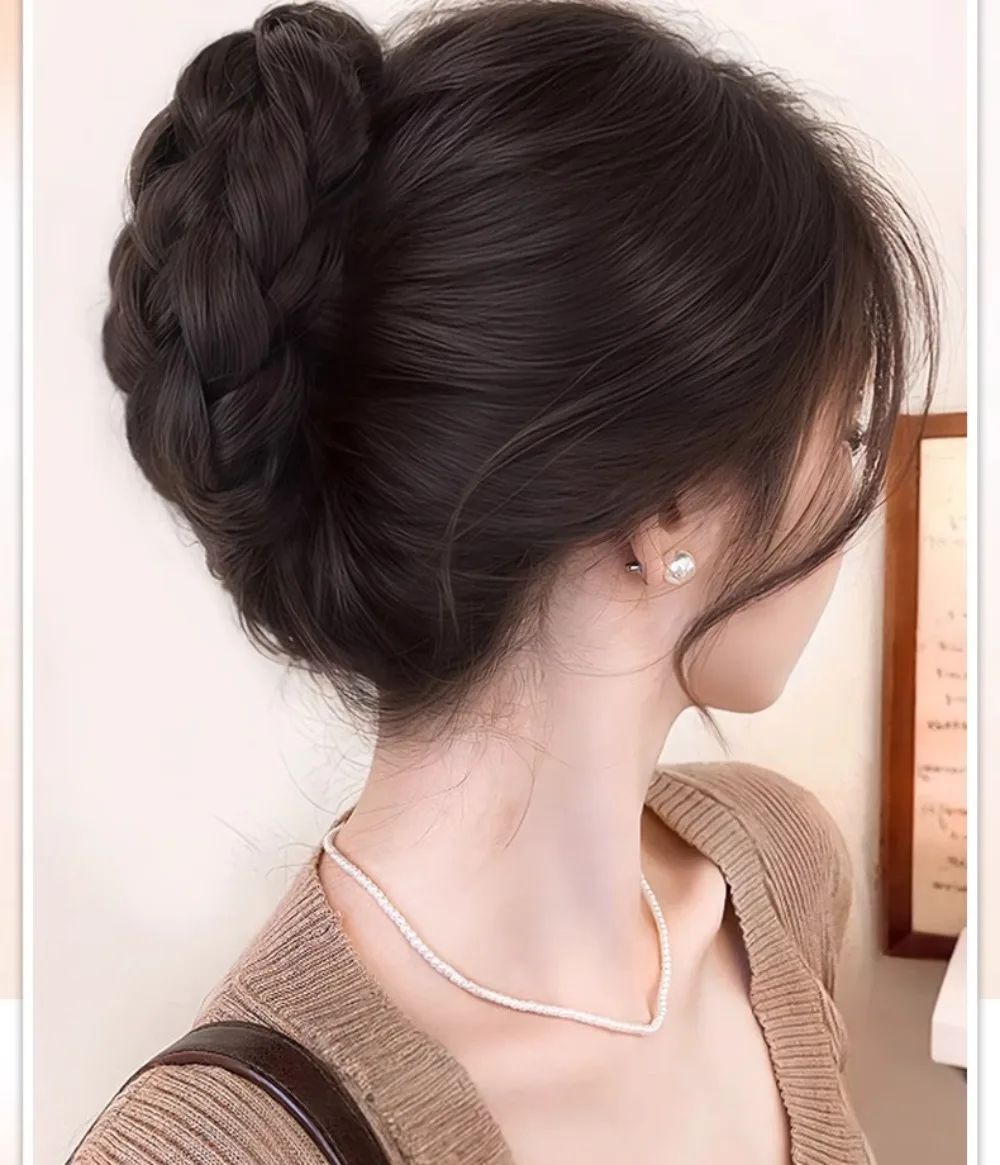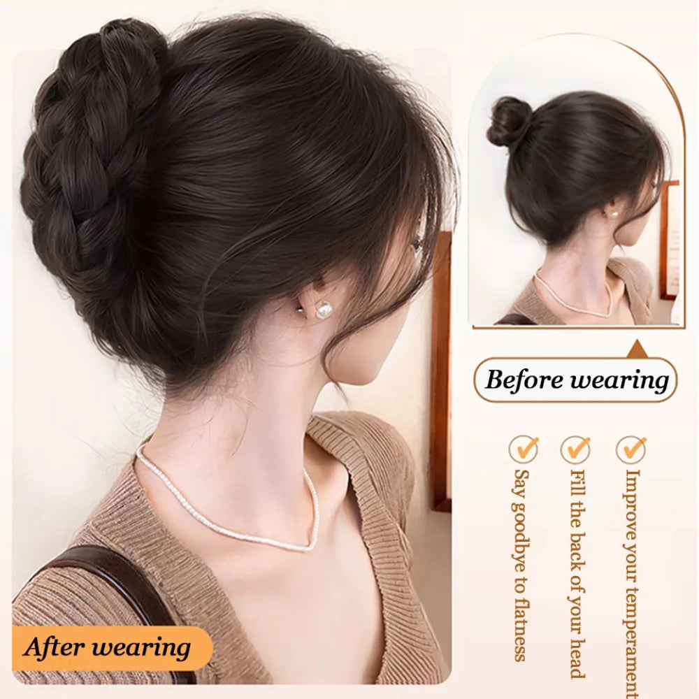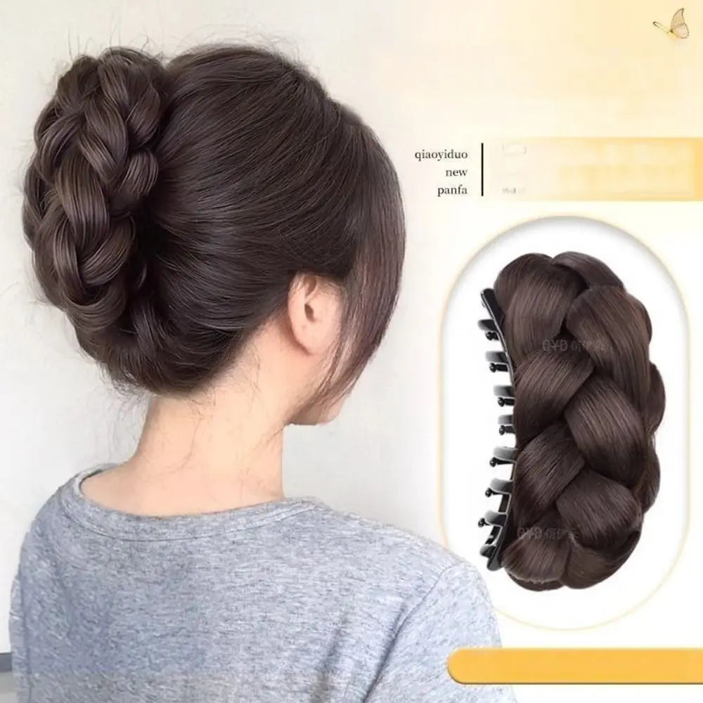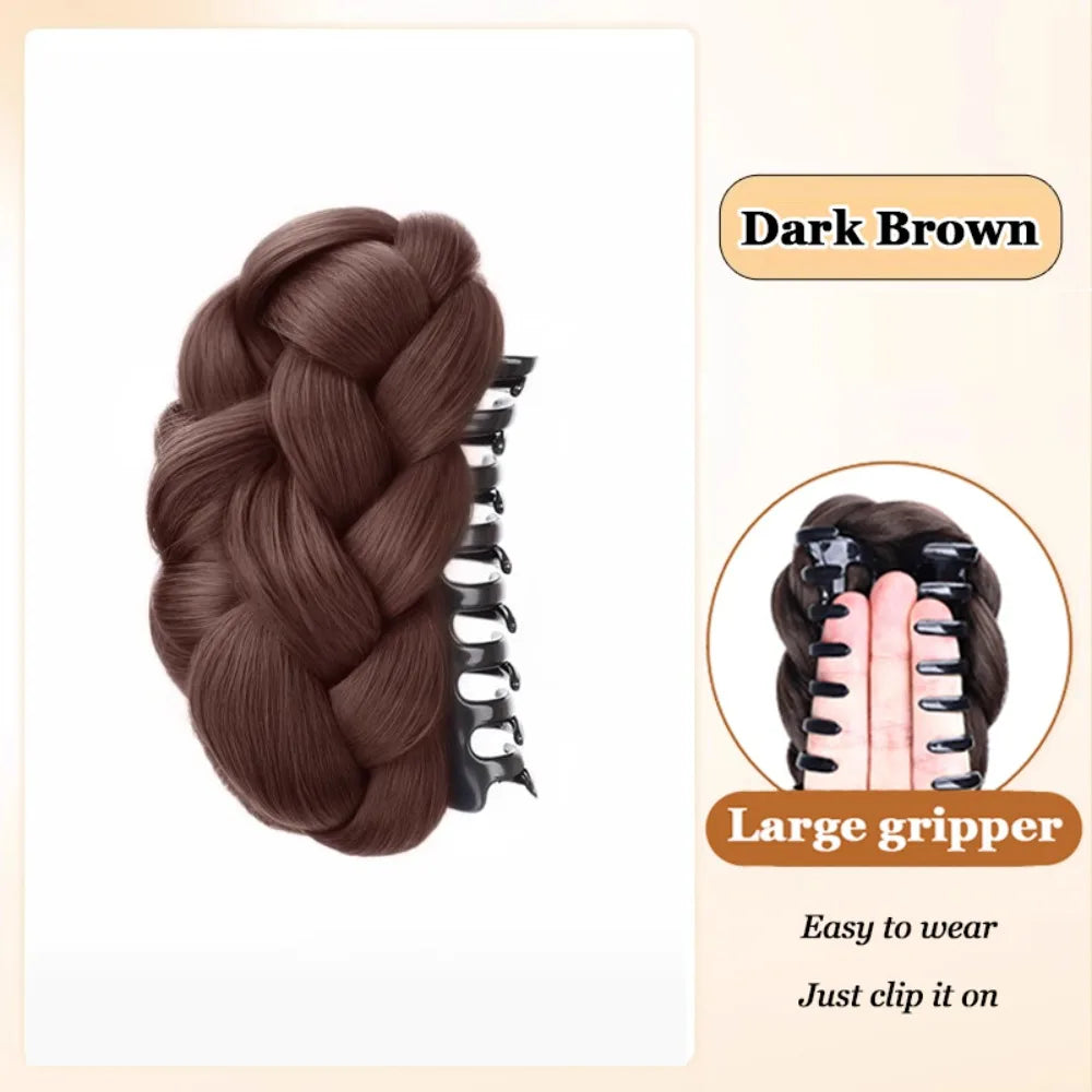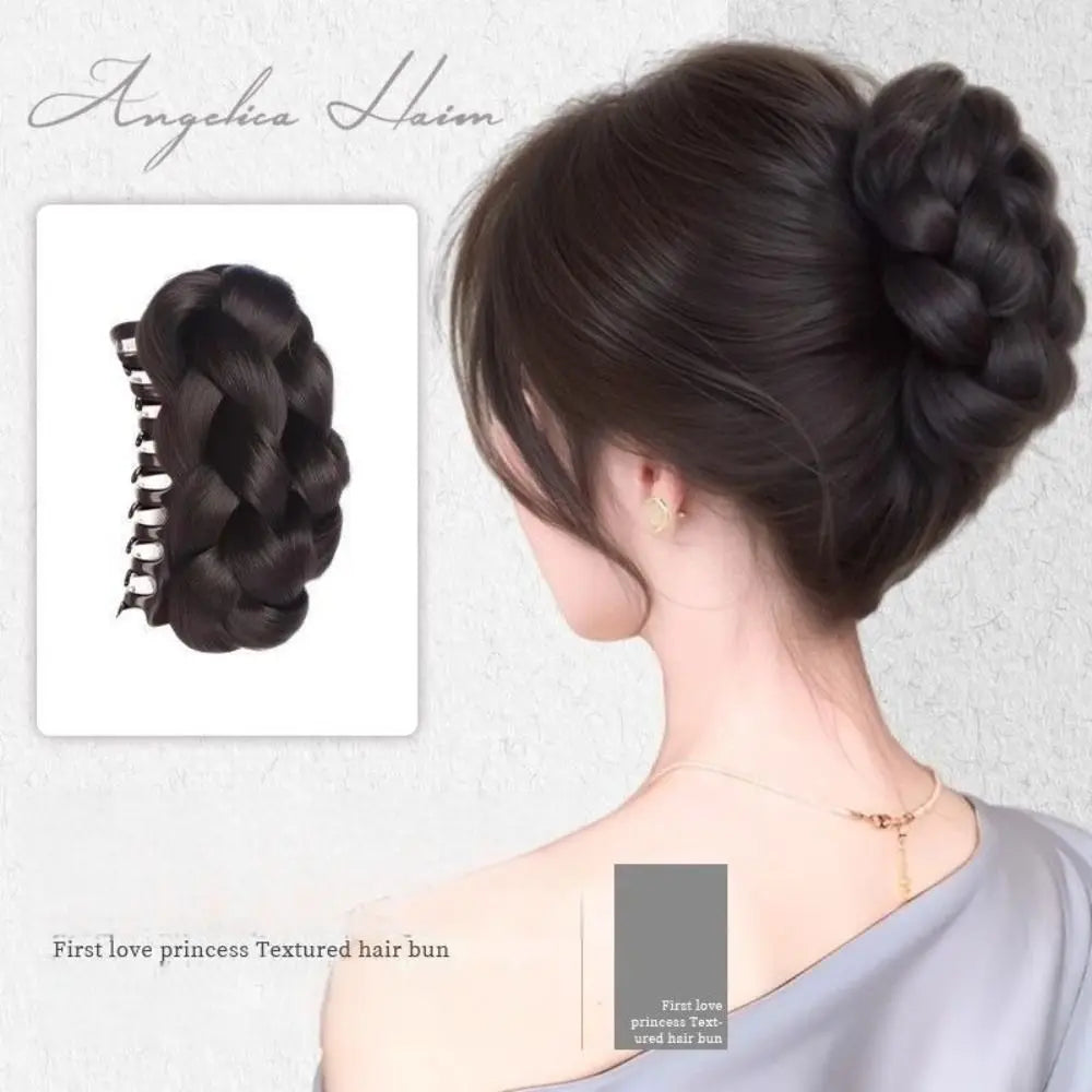 Daiiibabyyy New Synthetic Hair Bun Claw Clip Fluffy Brown Wig Hair Clip Natural Black Hairpiece Hair Accessories