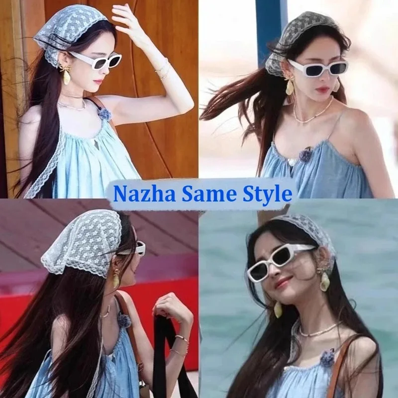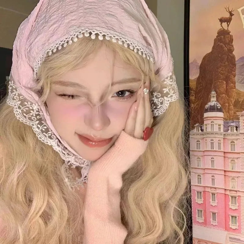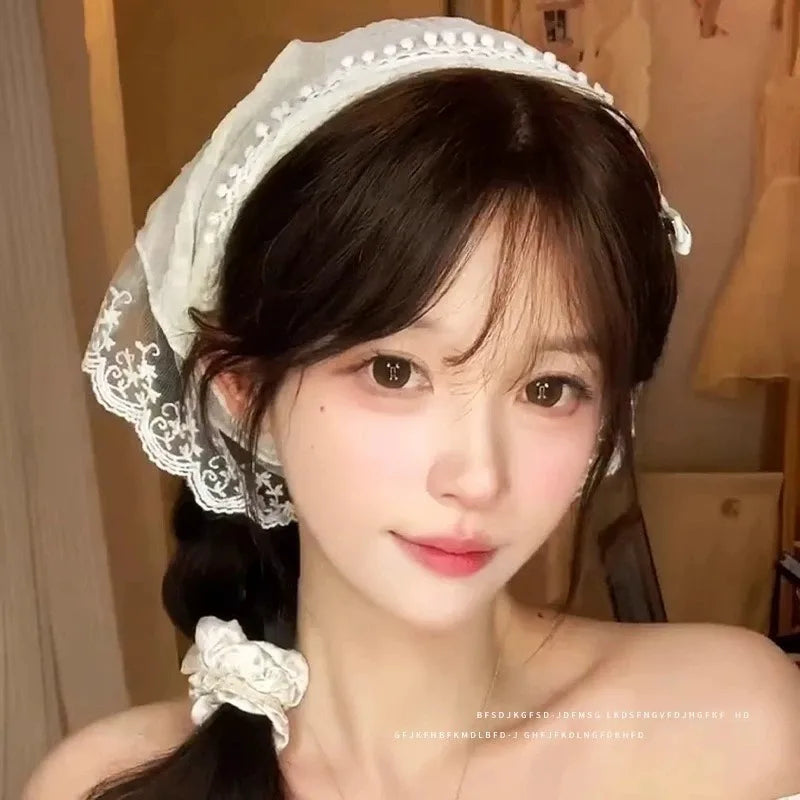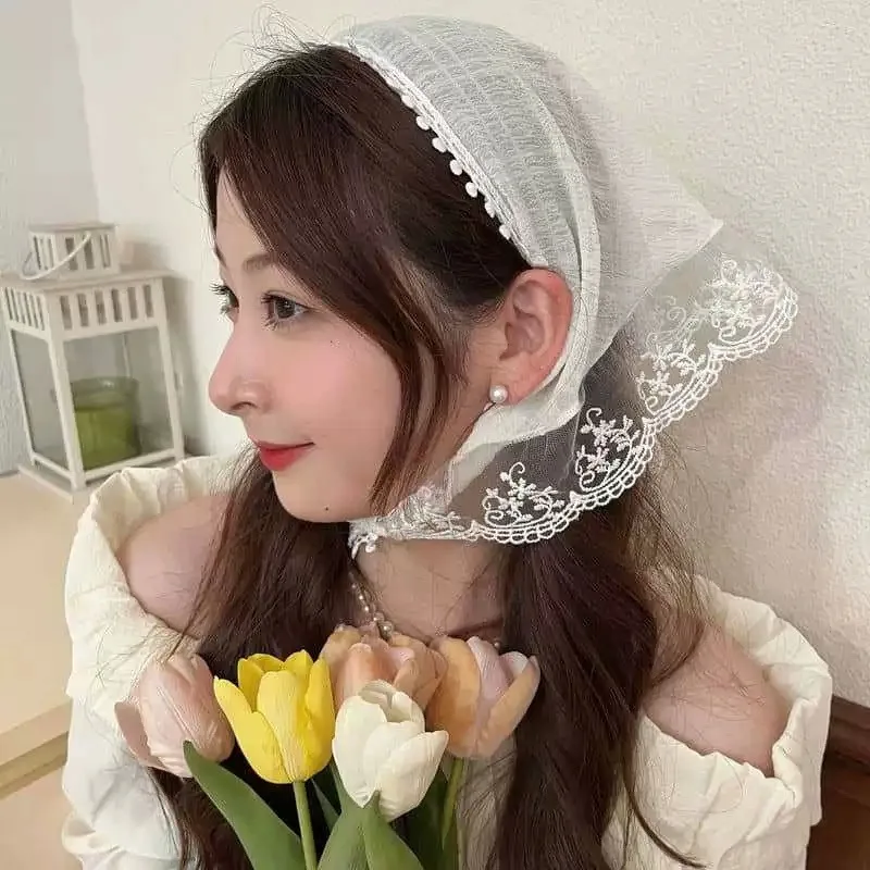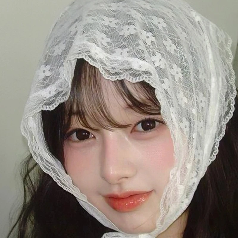 Daiiibabyyy Spring Summer Floral Hair Scarf Elegant Headwrap Women French Country Style Lace Mesh Triangle Scarf Bohemian Hair Accessories