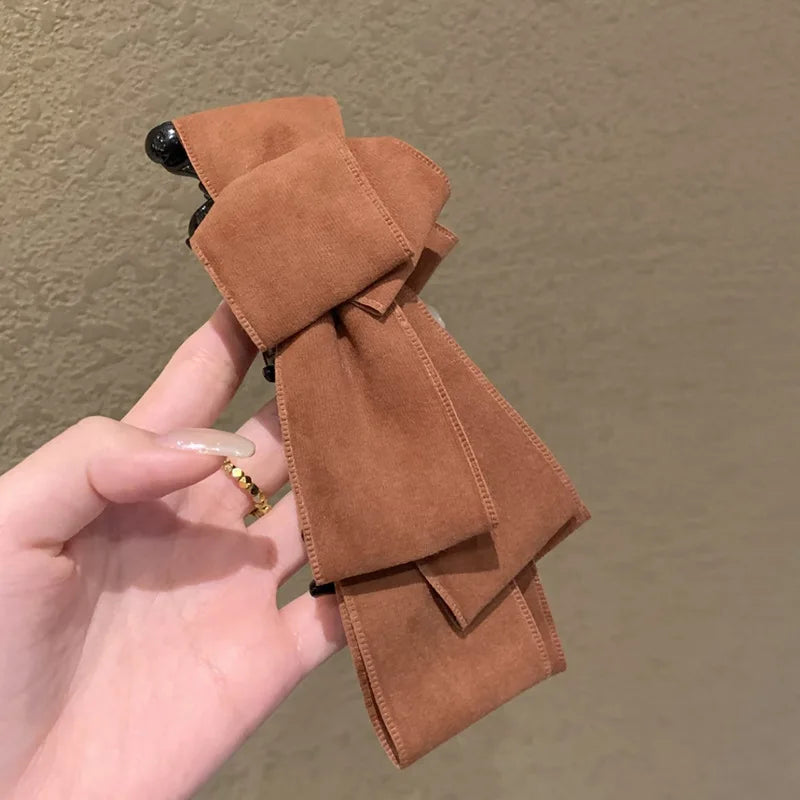 Daiiibabyyy  Winter Autumn Suede Bow Banana Clip Hair Clip for Women Ponytail Bun Twist Claw  Hairbows for Girls Leather Hair Accessories