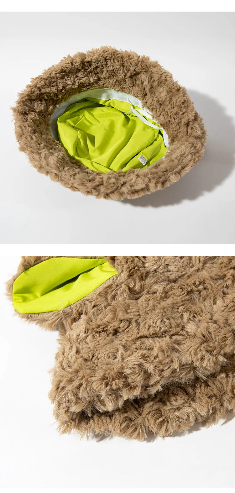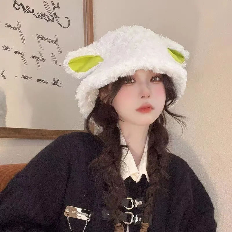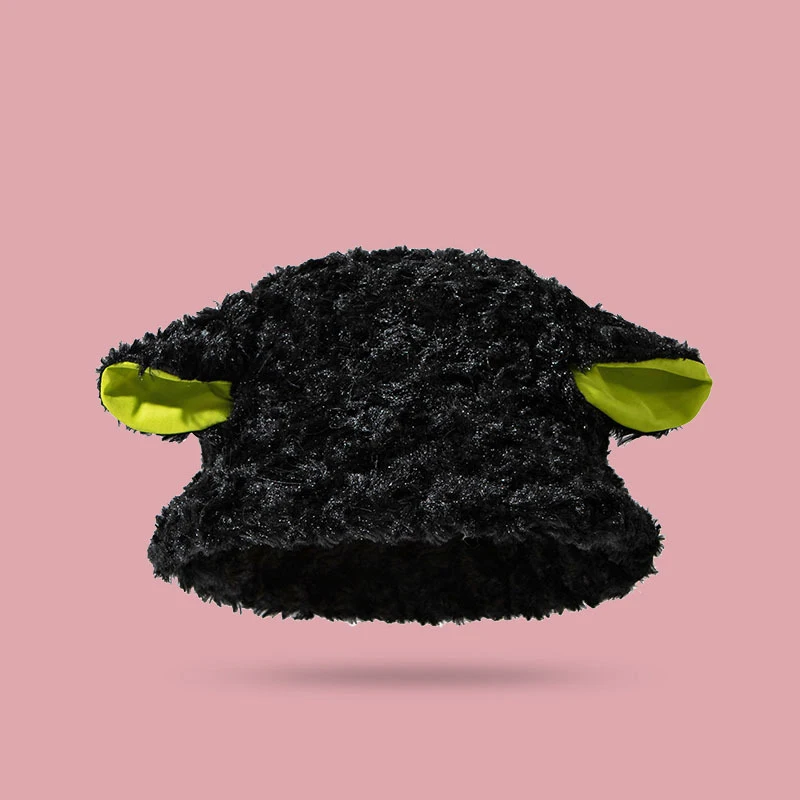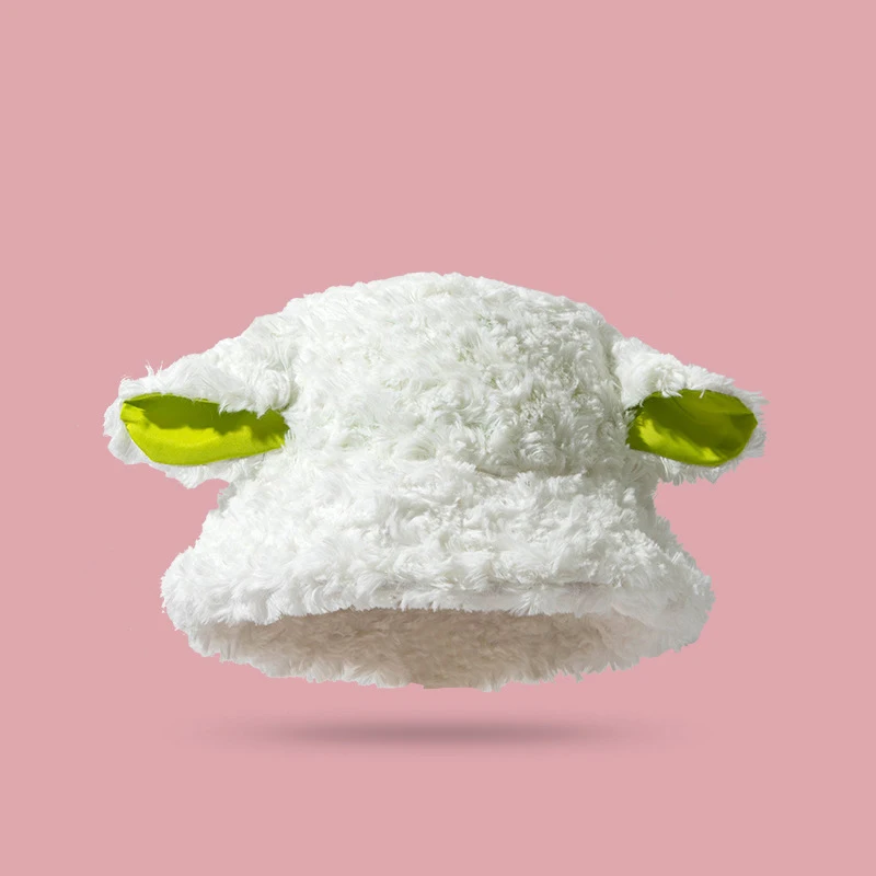 Daiiibabyyy Sheep Ear Lamb Faux Fur Bucket Hat Winter Warm Velvet Hats for Women Lady Thicken Bob Panama Outdoor Fisherman Hats Caps Girls