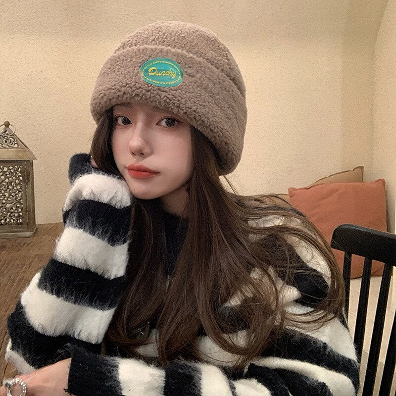 Cute Biking Ear Protection Warm Landlord Hat Winter Head Hood Ladies Thick Lamb Velvet Melon Leather Hat шапка женская зима 2022