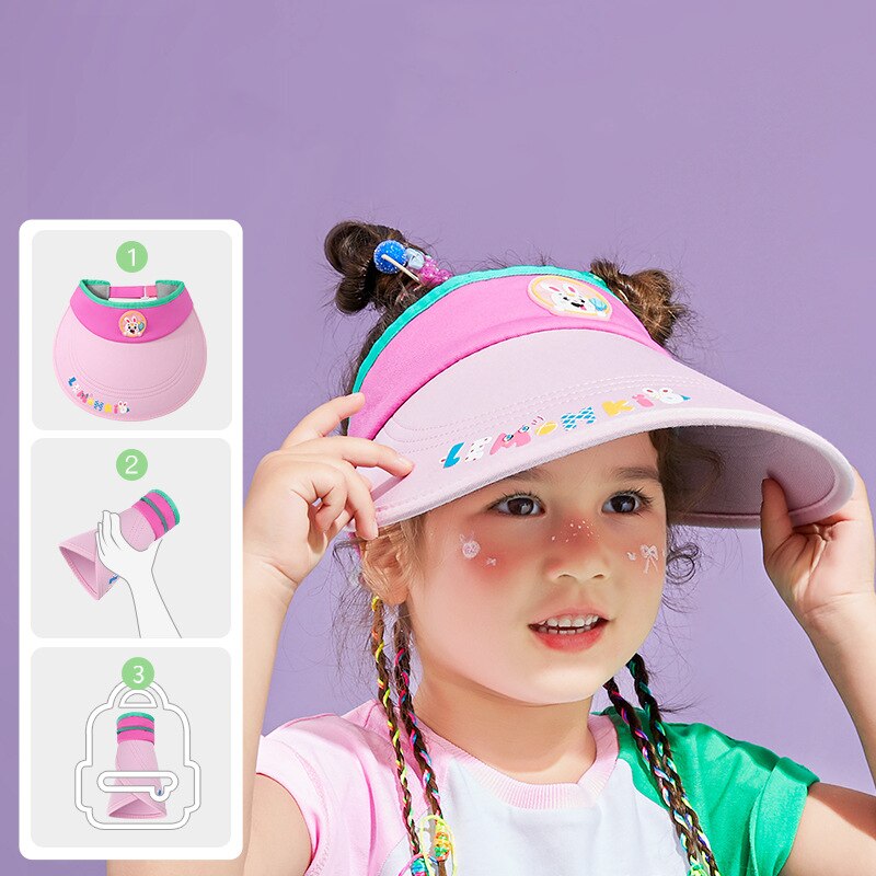 Daiiibabyyy Baby Roll-up Straw Visor Hat Sun Hat, Kid Toddler Wide Brim Cute Bunny Ponytail Summer Beach Sun Hat Adjustable For 1-12 Years