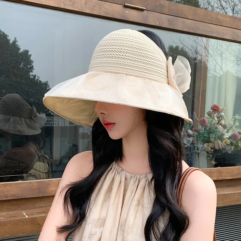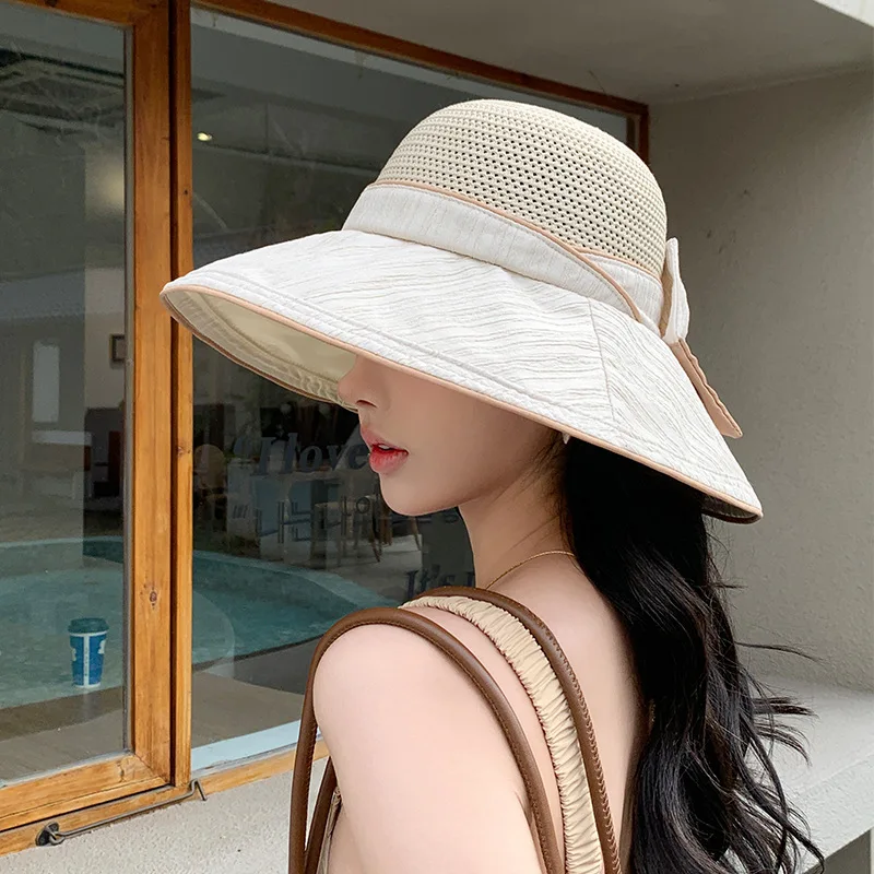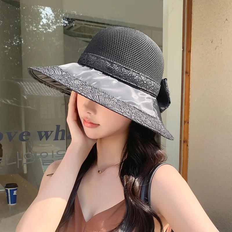 Daiiibabyyy Bow Knot Big Brim Sun Hat Ladies Women Girls Fashion Designer Bucket Street Cap