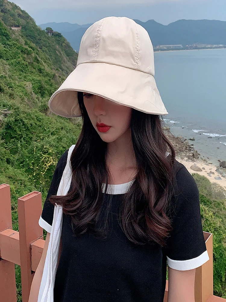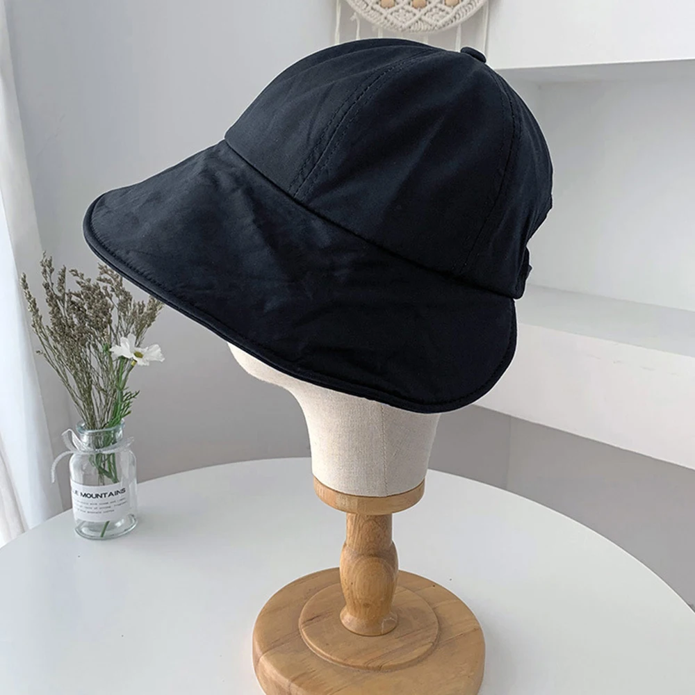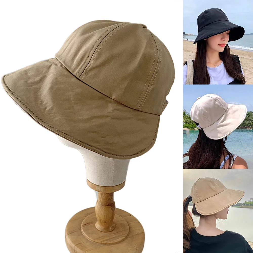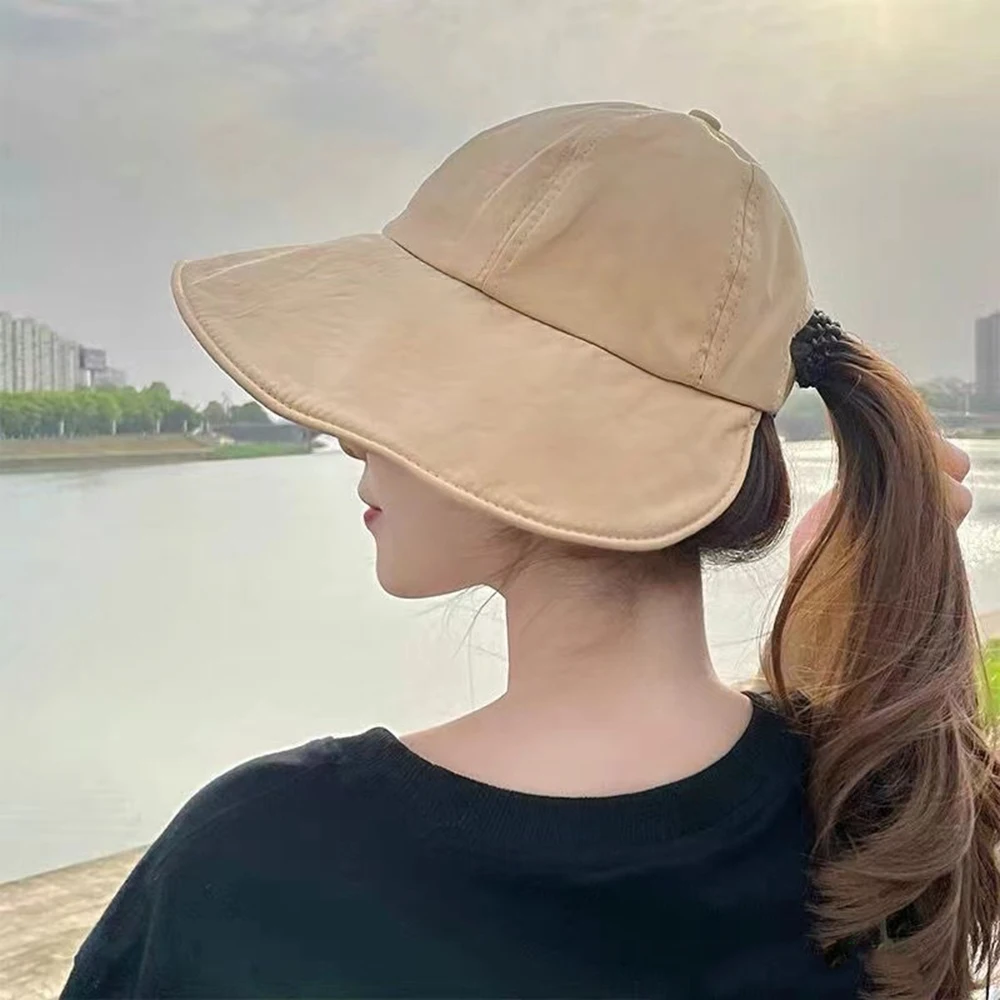Daiiibabyyy Can Tie Ponytail Fisherman Hat Summer Foldable Bucket Cap UV Protection Hat Fashion Wide Brim Headgear Fashion Outdoor Sun Cap