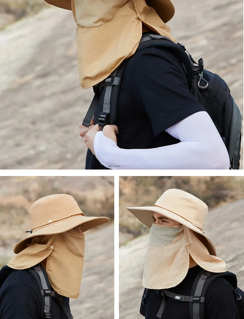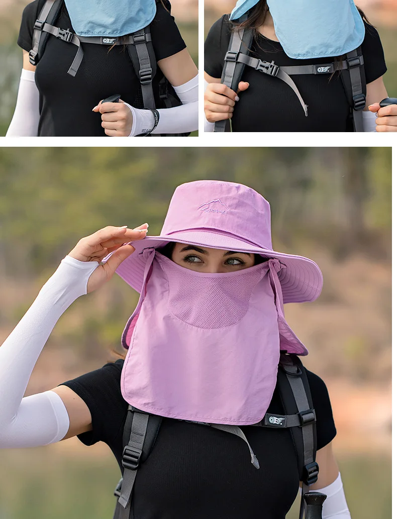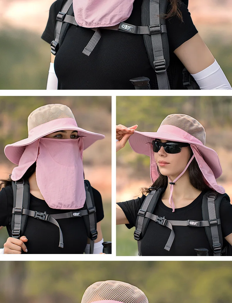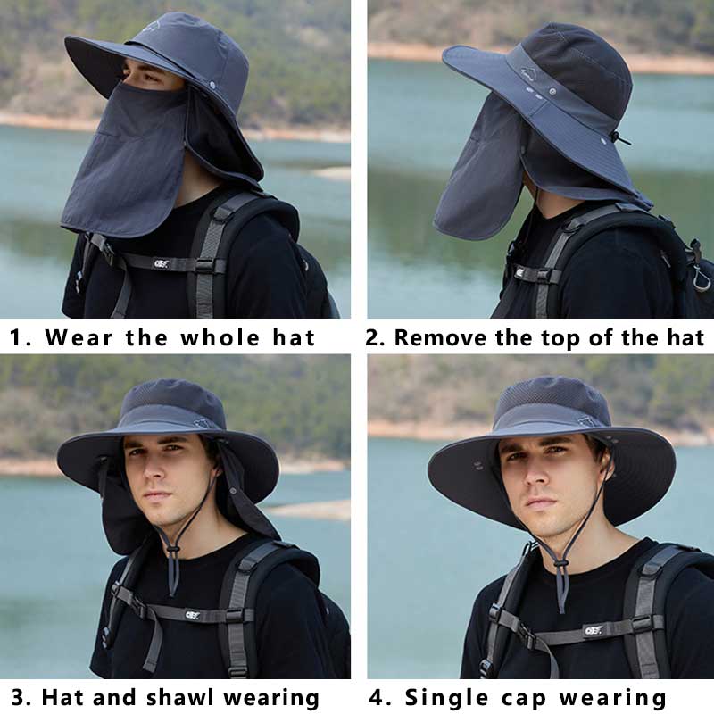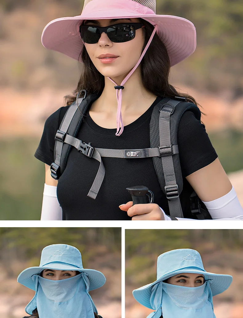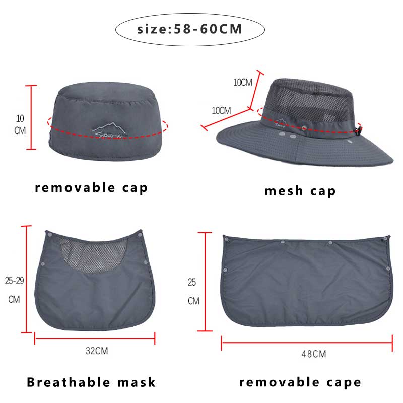 Daiiibabyyy Double Top design 4PCS Design Bucket Hats women men big brim hiking cap Detachable mesh couple fishing hat foldable sun hat 9216