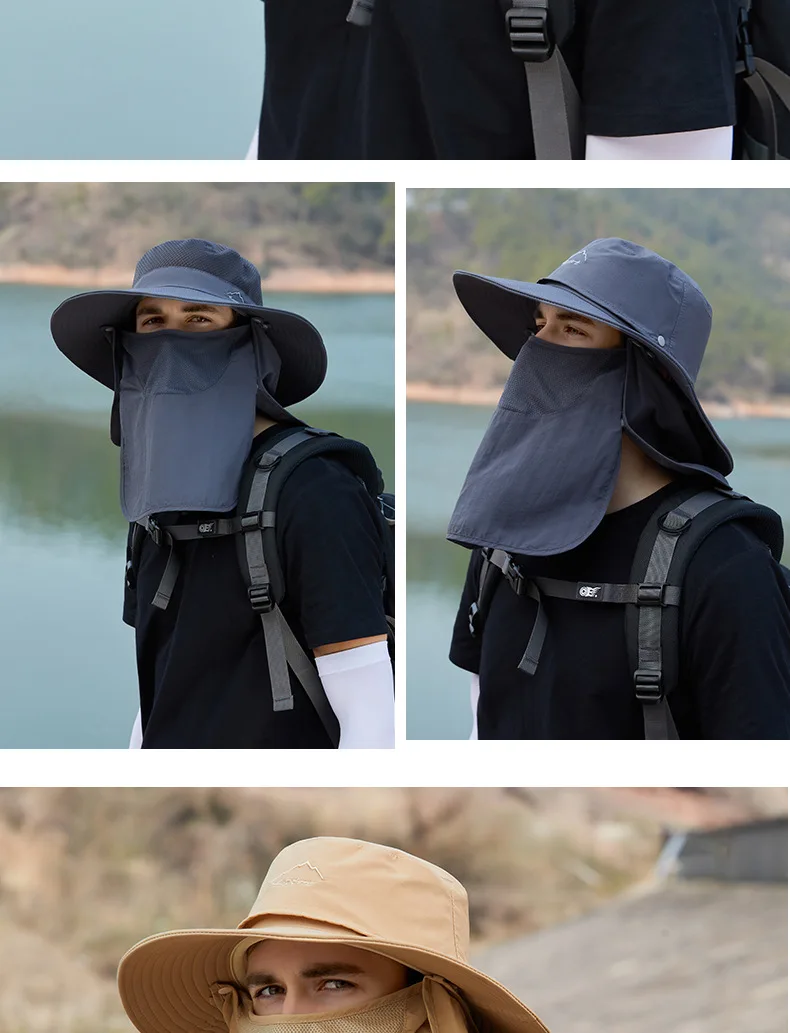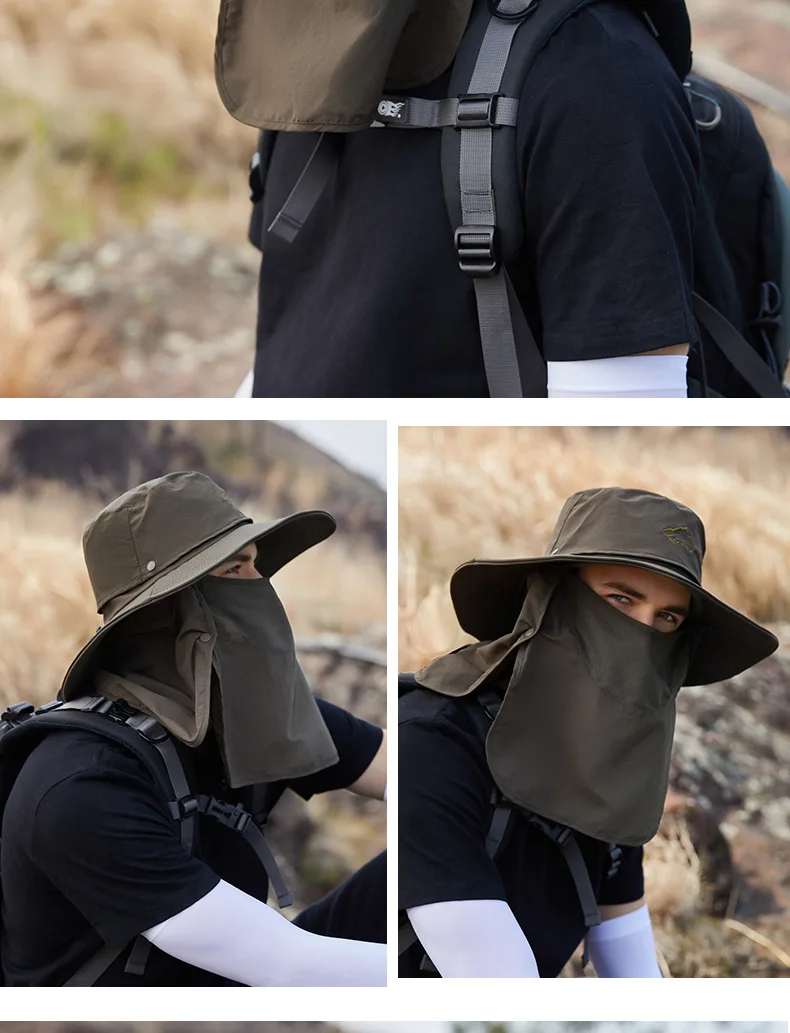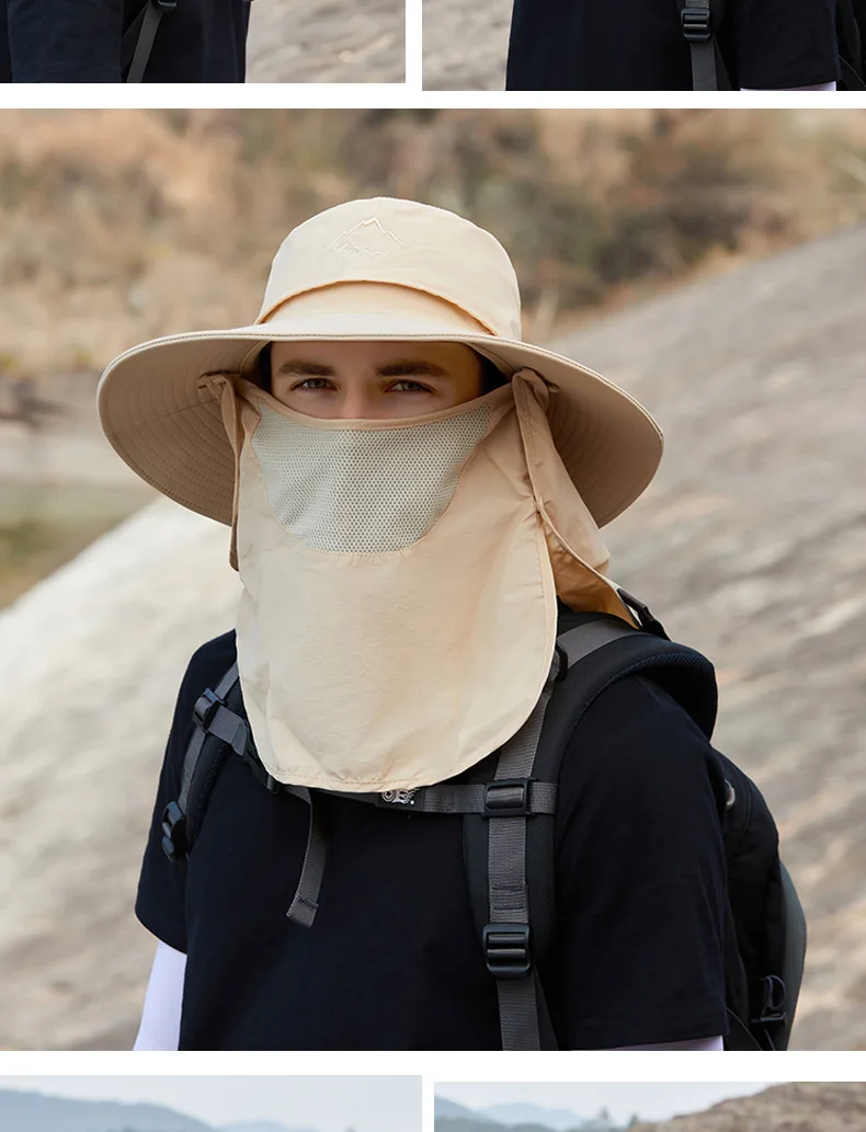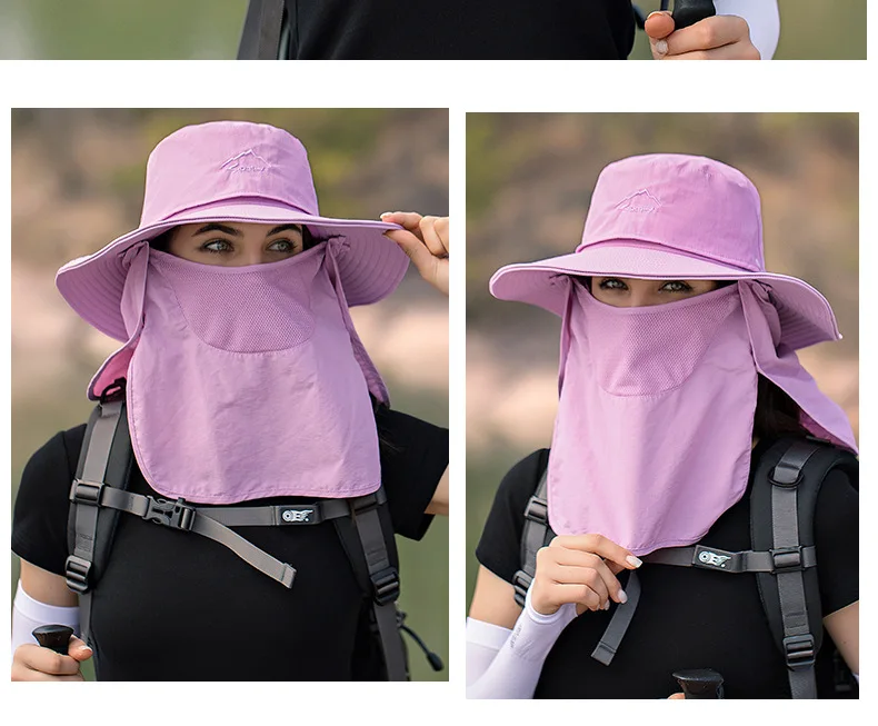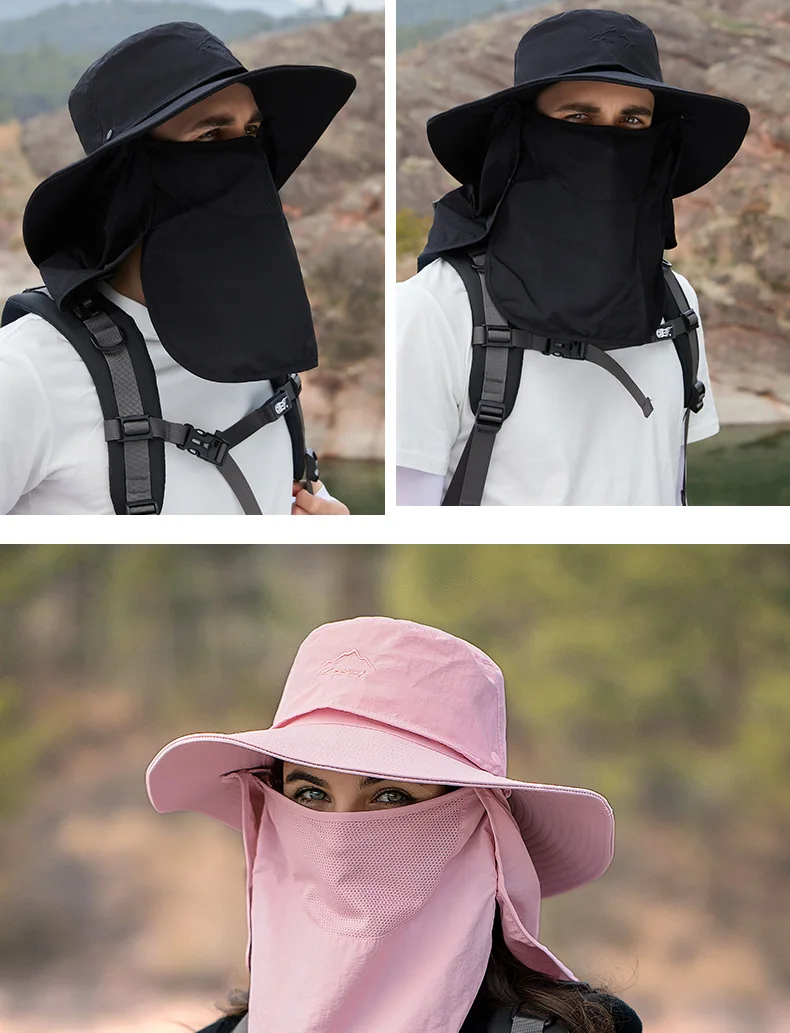 Daiiibabyyy Double Top design 4PCS Design Bucket Hats women men big brim hiking cap Detachable mesh couple fishing hat foldable sun hat 9216
