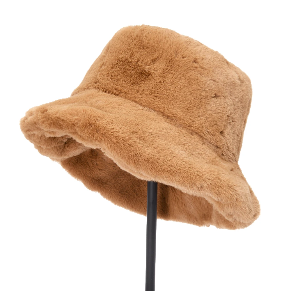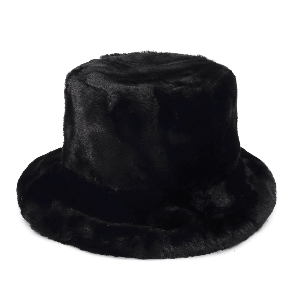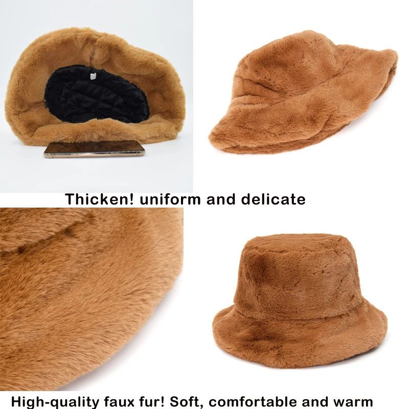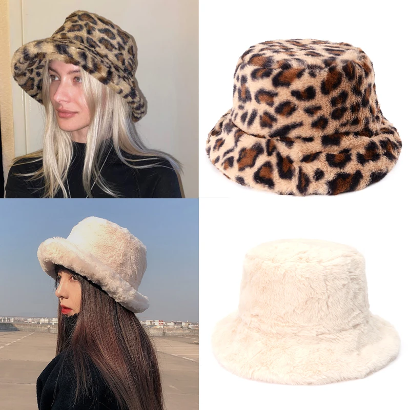 Daiiibabyyy Fashion Leopard Print Faux Fur Bucket Hat for Women Winter -20℃ Warm Soft Thickened Fisherman Hats Outdoor Panama Fishing Cap