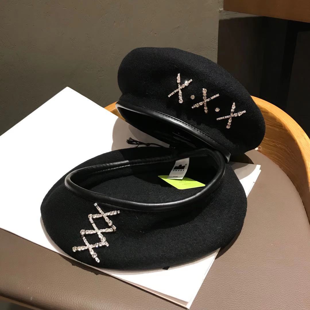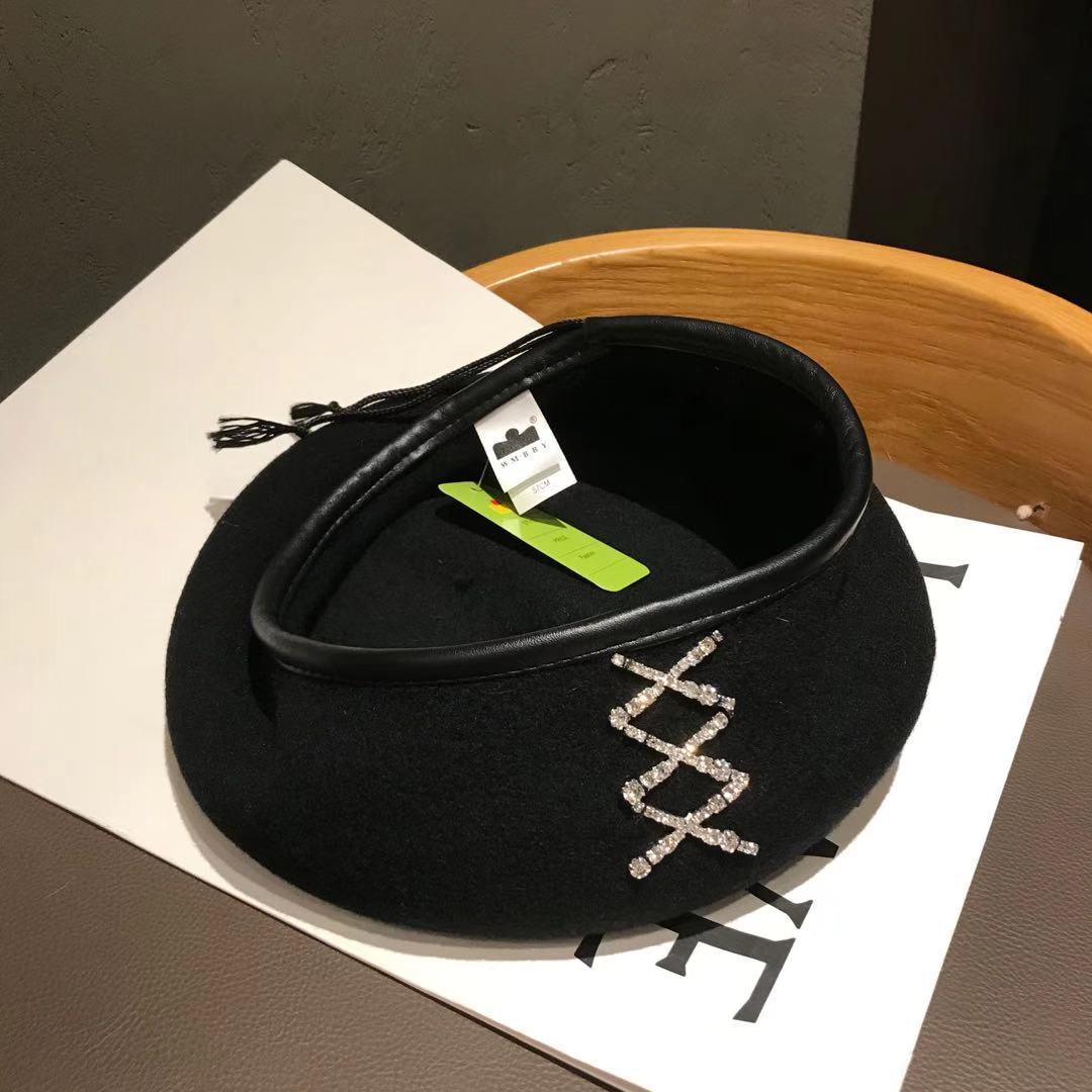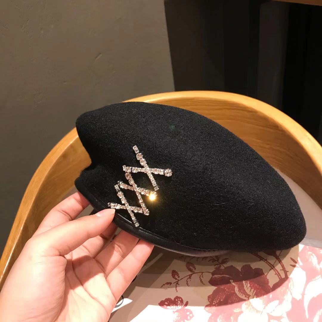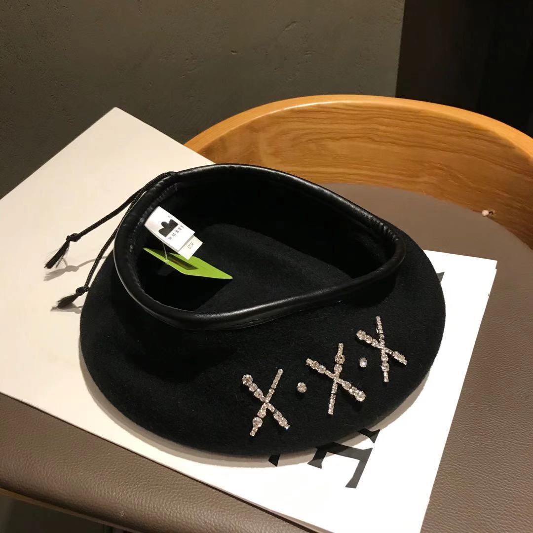 Daiiibabyyy Female Winter Headwear Beautiful Starfish Rhinestone Woolen Knitted Caps Women Fashion Pure Wool Beret Hats