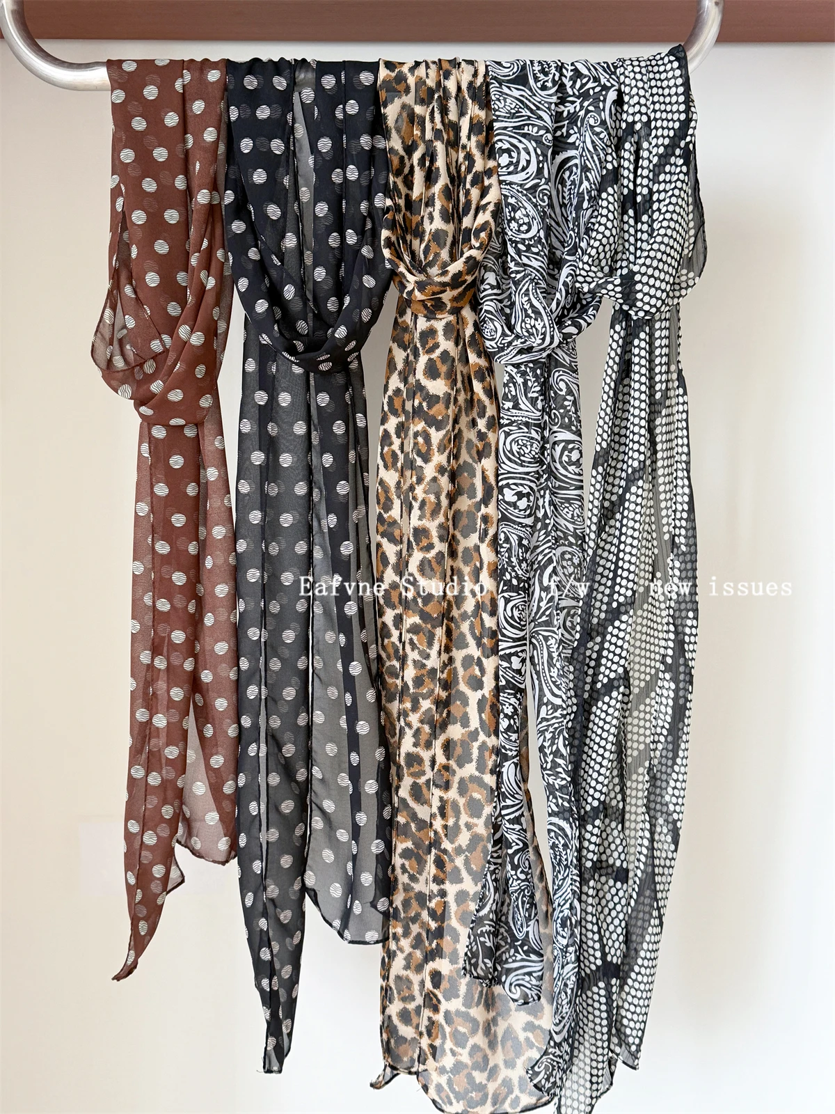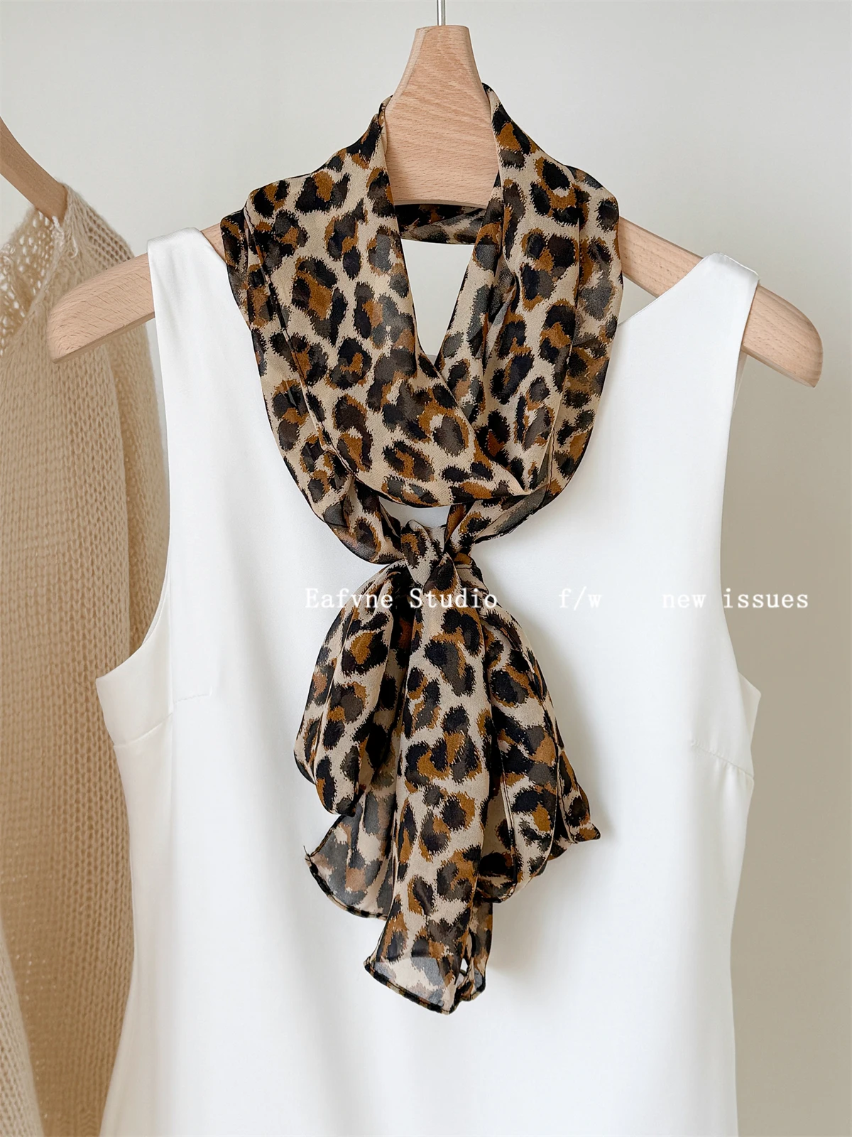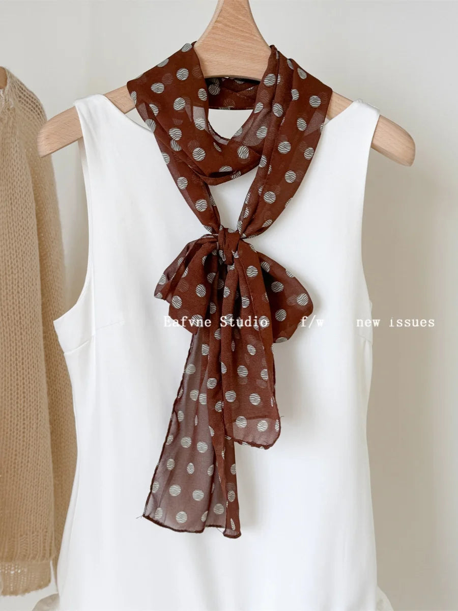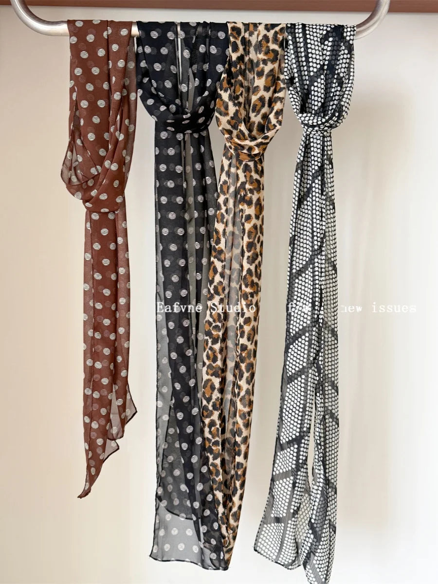 Daiiibabyyy French Scarf Blogger Polka Dot Leopard Print High-end Scarf Women's Neck Protection Fashionable Long Neck Scarf