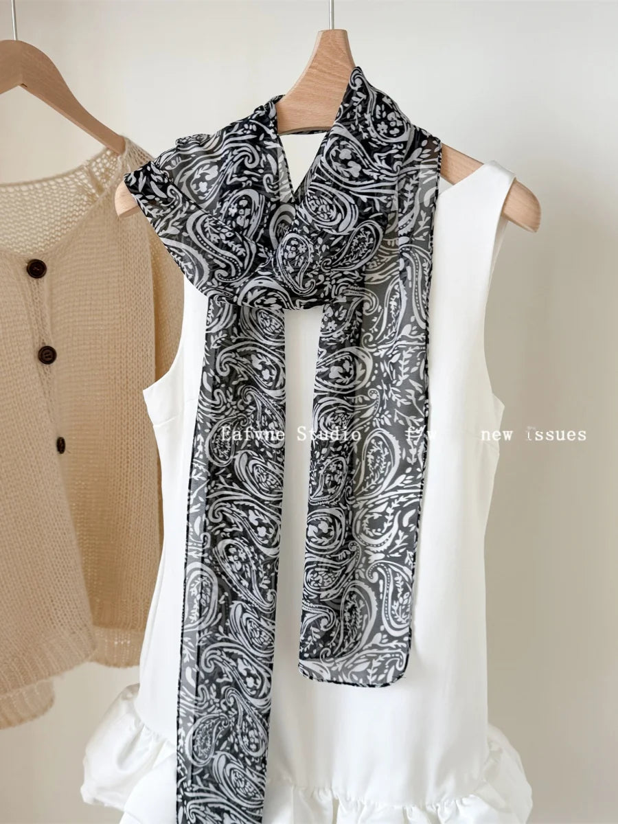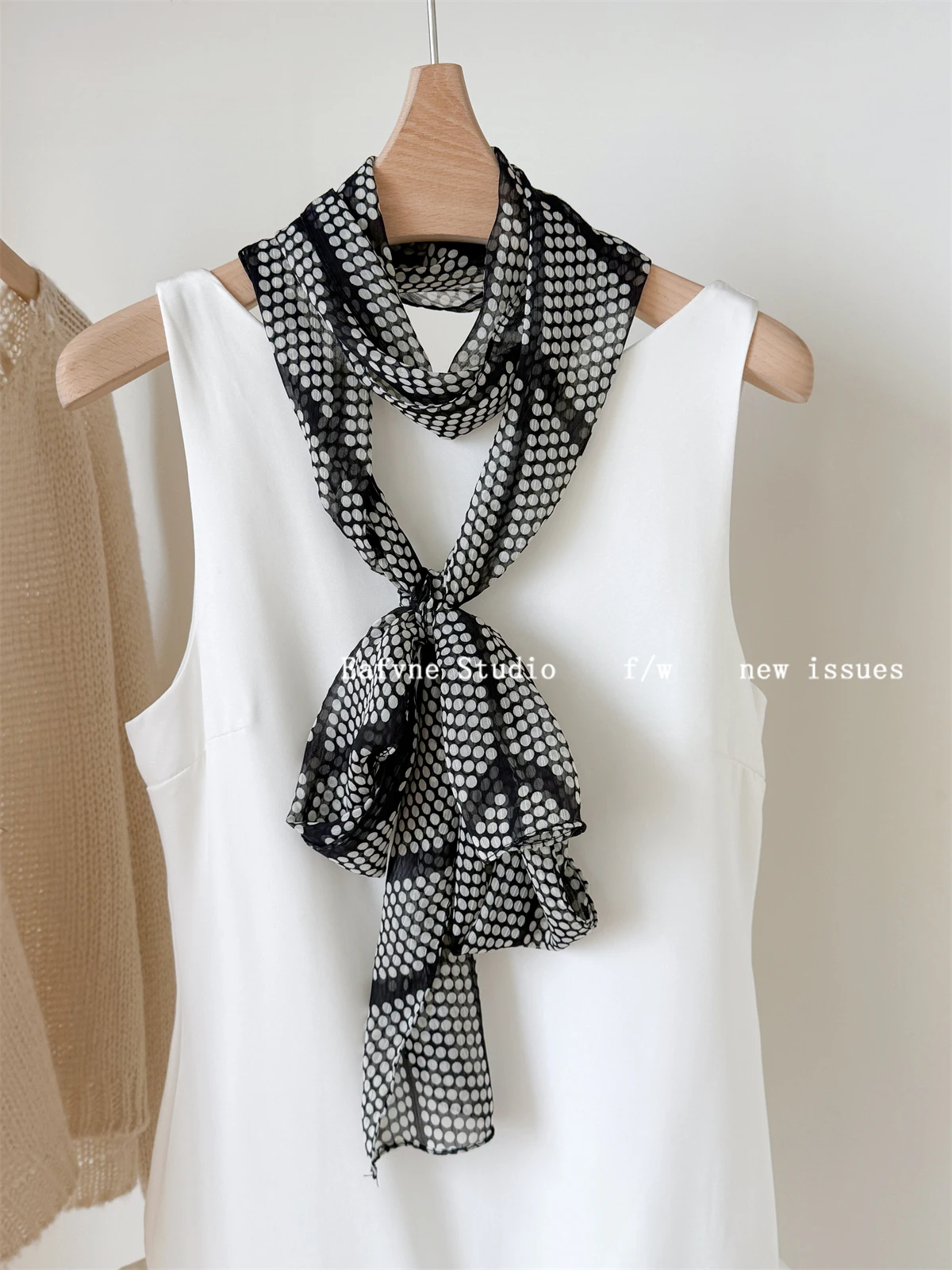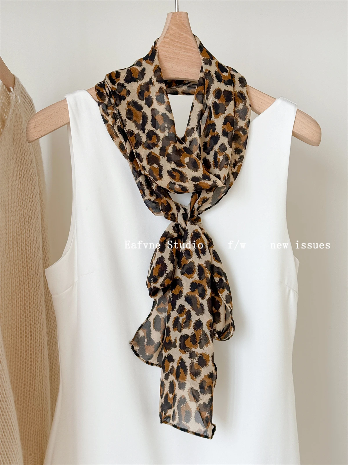 Daiiibabyyy French Scarf Blogger Polka Dot Leopard Print High-end Scarf Women's Neck Protection Fashionable Long Neck Scarf