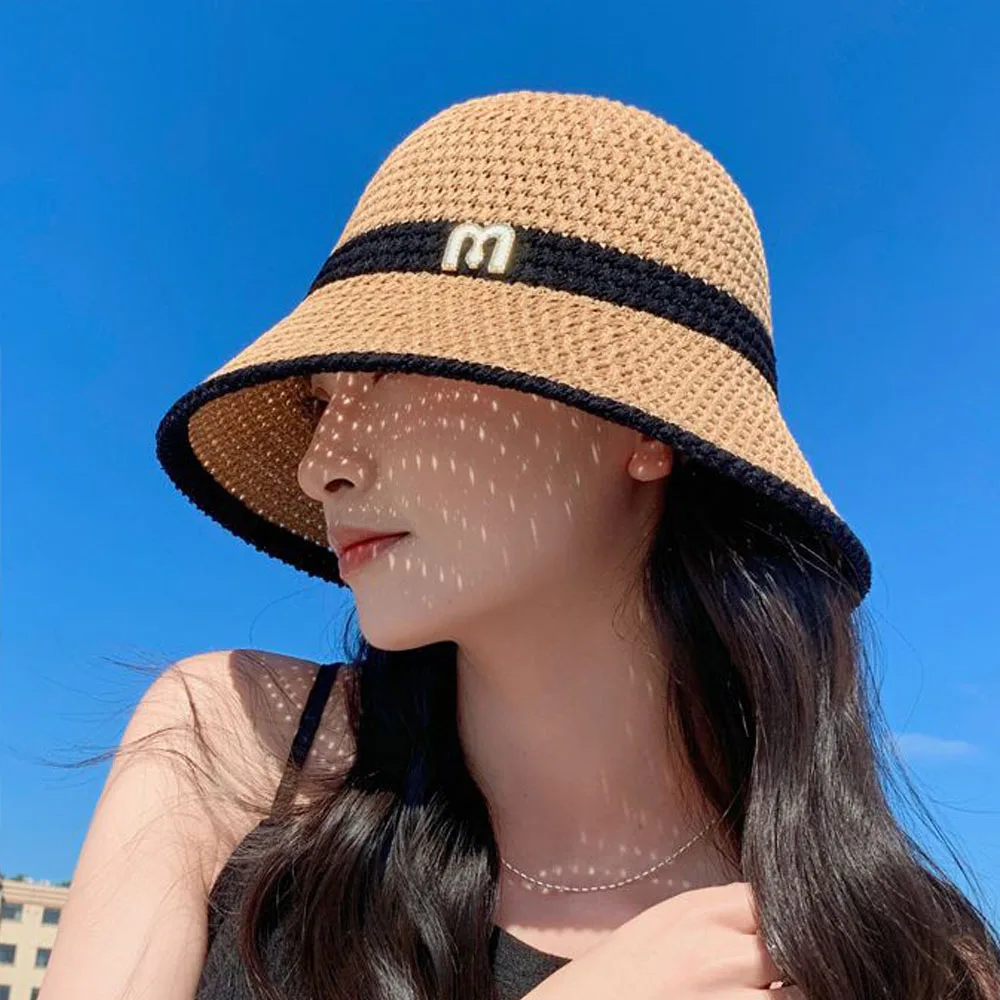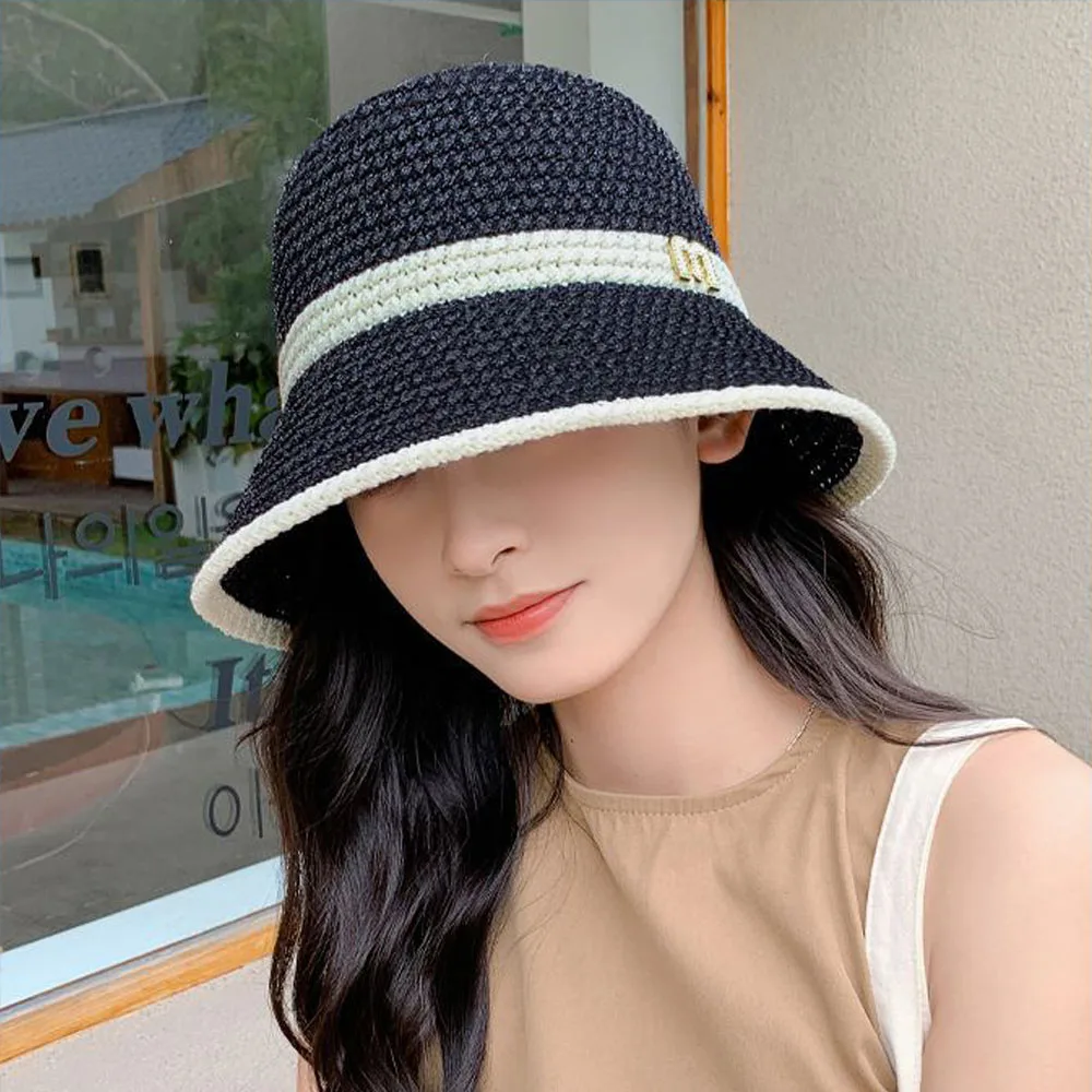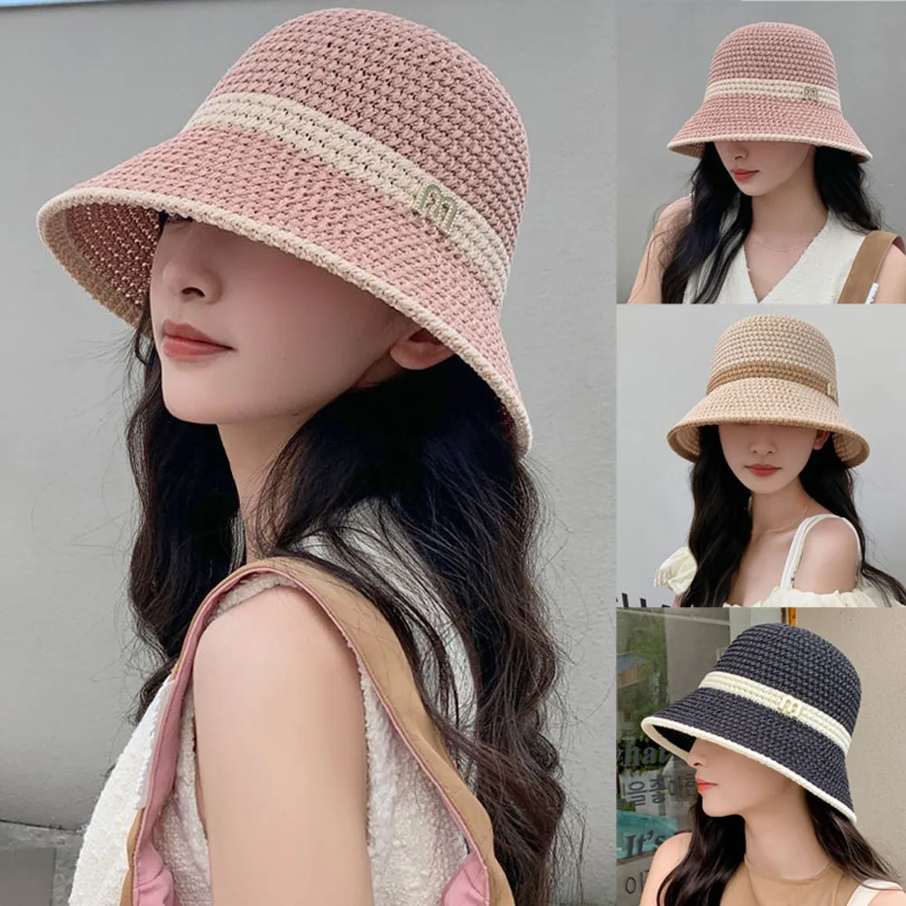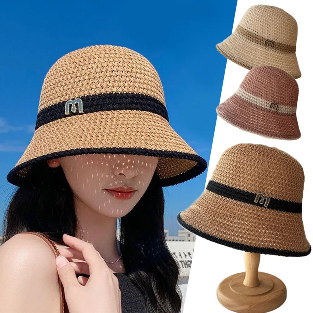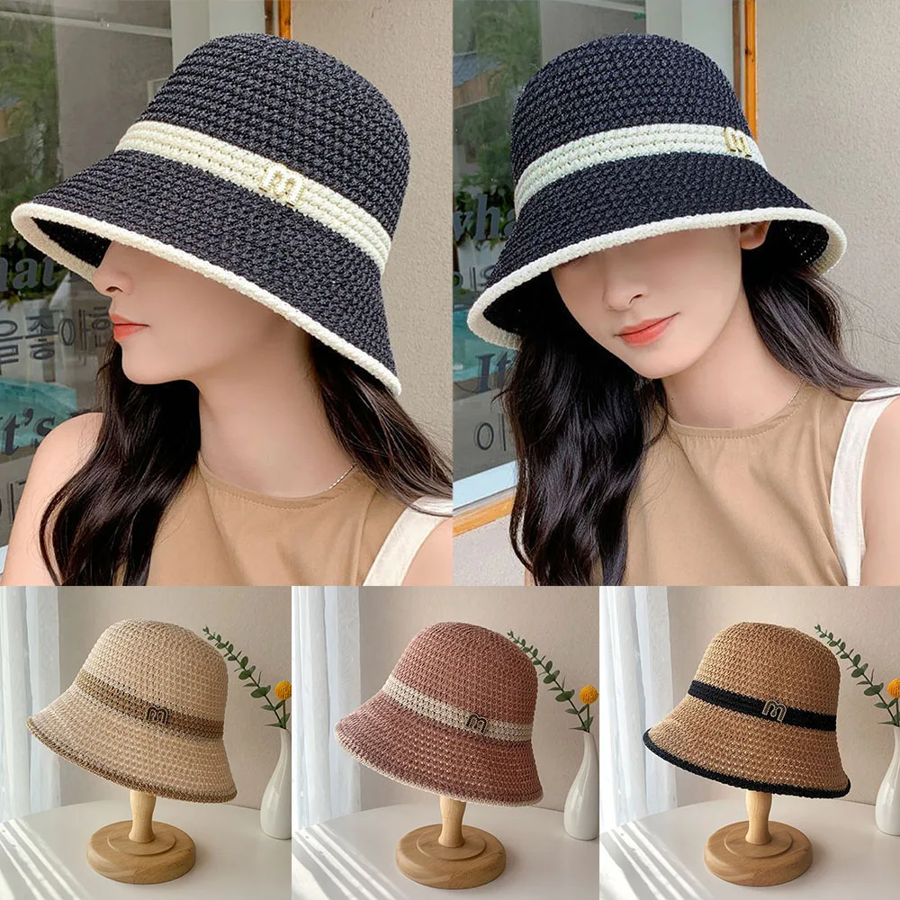 Daiiibabyyy Girls Straw Weave Sun Hat Windproof Ropes Women Mesh Breathable Hat Spring Summer Fisherman Caps New Adjustable Adjustable Caps