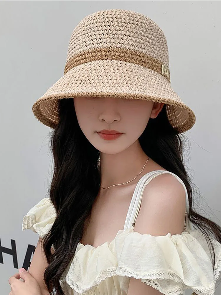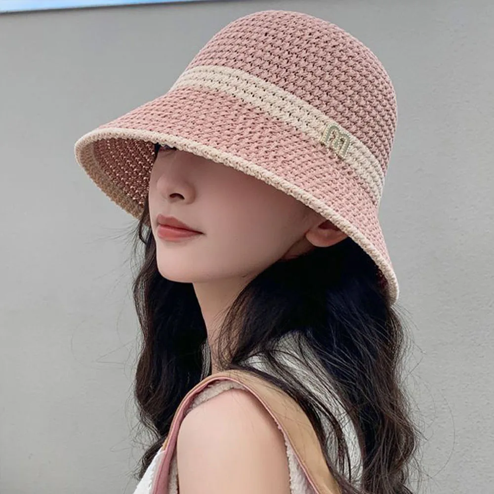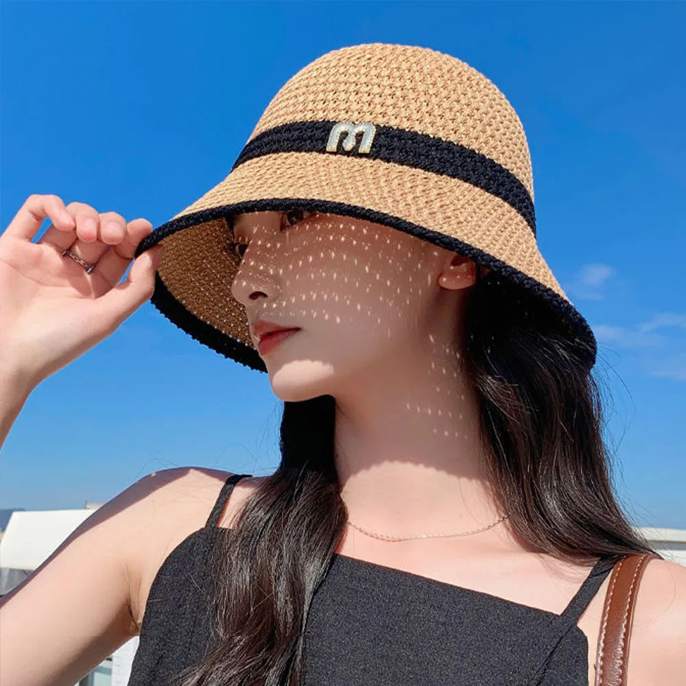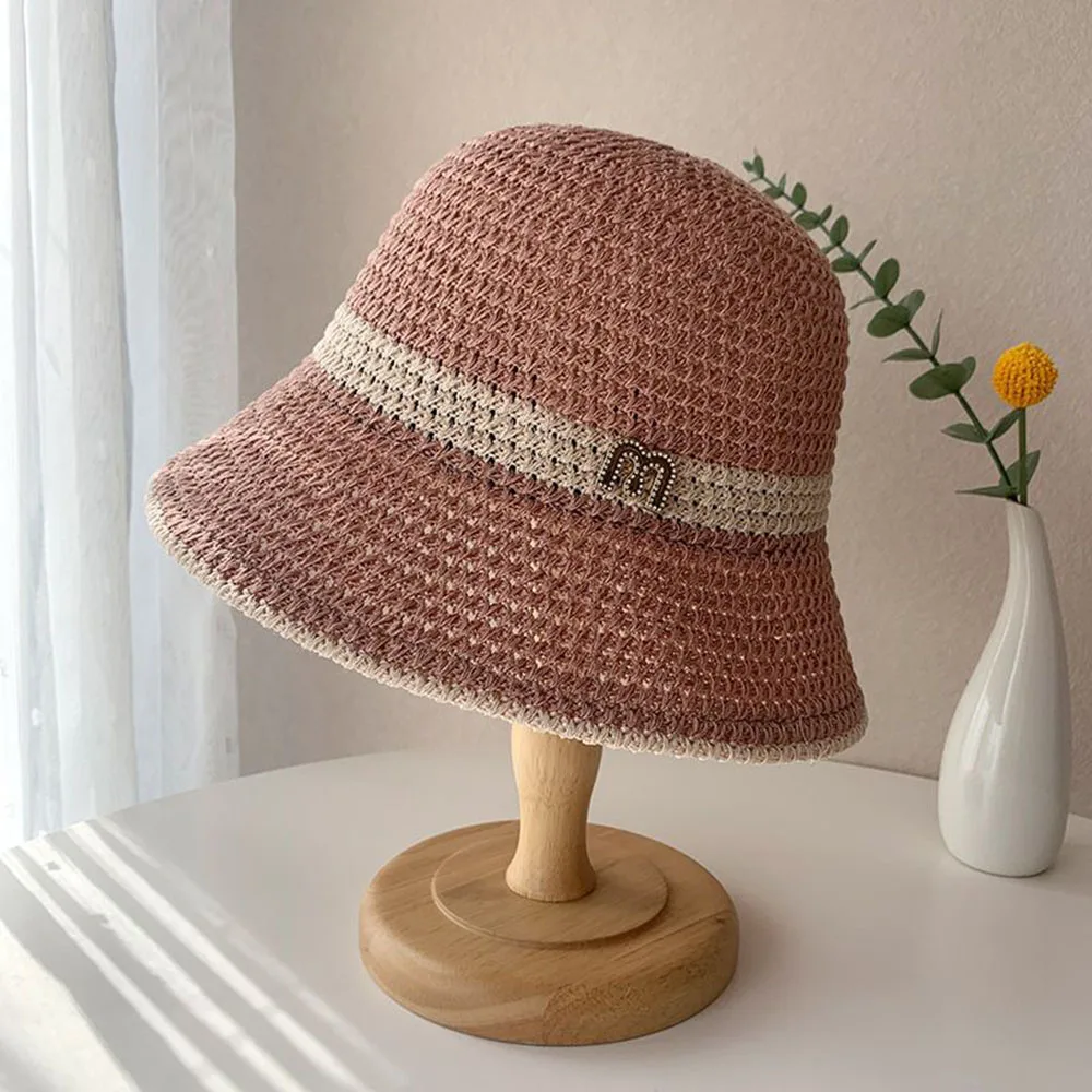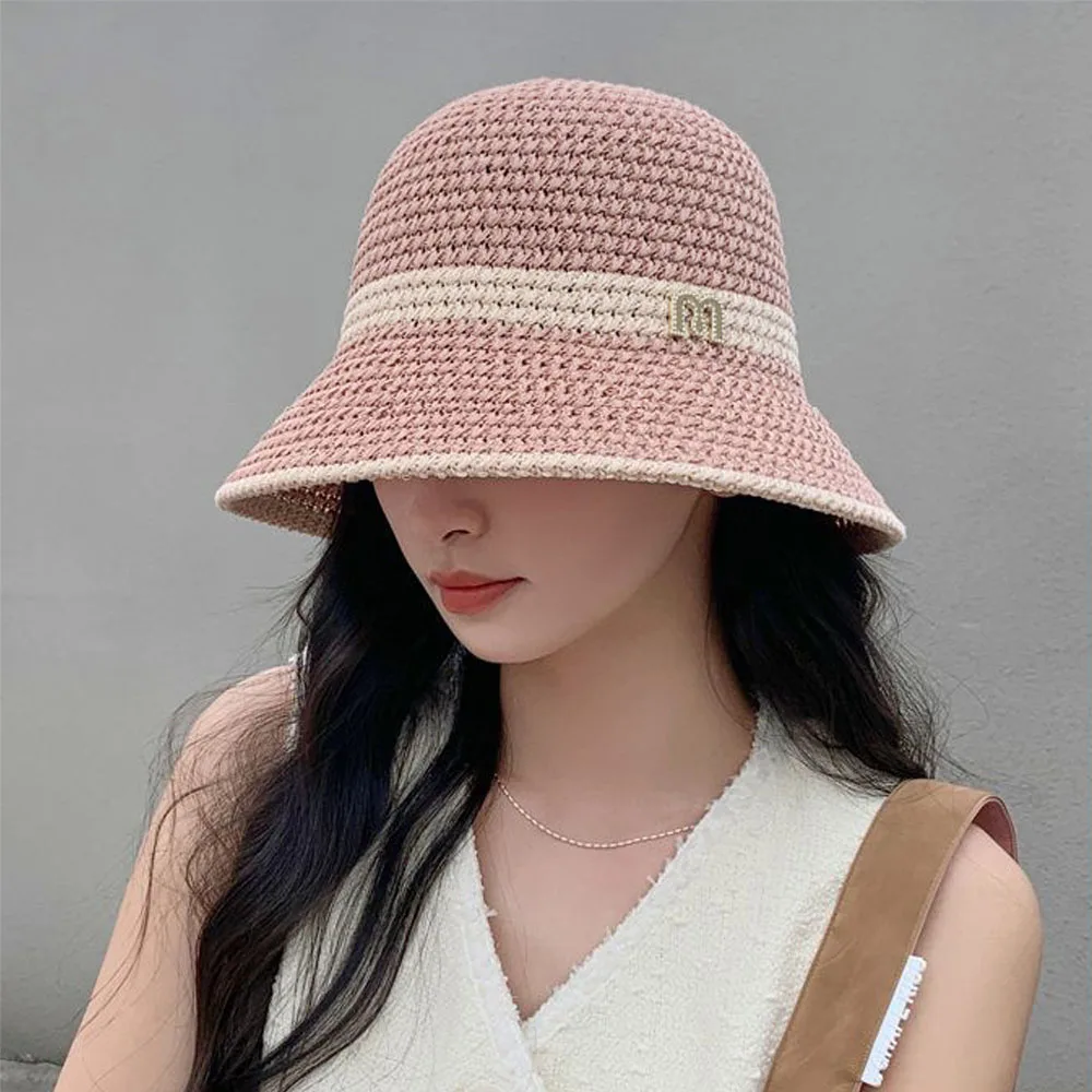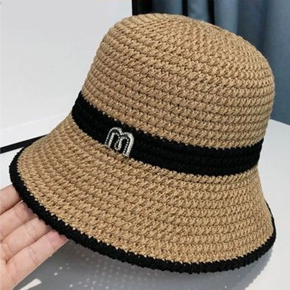 Daiiibabyyy Girls Straw Weave Sun Hat Windproof Ropes Women Mesh Breathable Hat Spring Summer Fisherman Caps New Adjustable Adjustable Caps