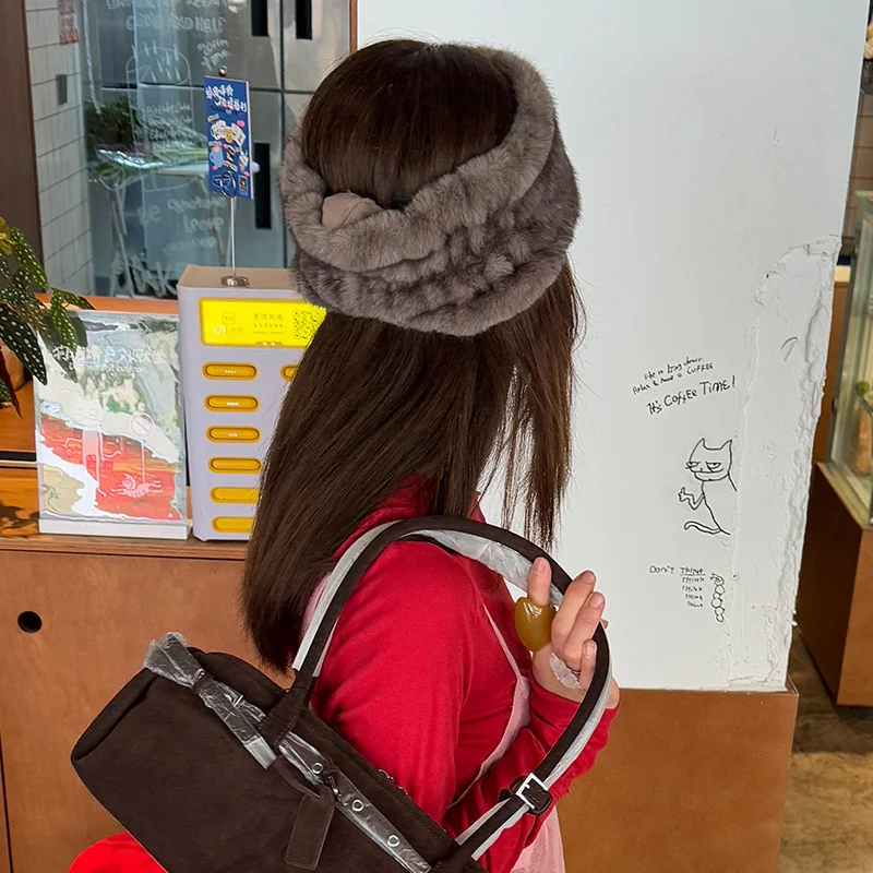 Daiiibabyyy Hat Hairband Imitation Mink Fur Warm Headband Leopard Print Soft Retro Spicy Girl With A Fashionable Personality Wide Headband
