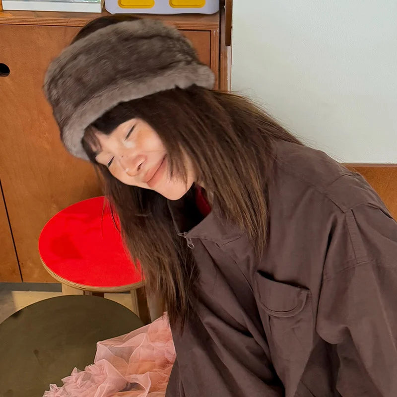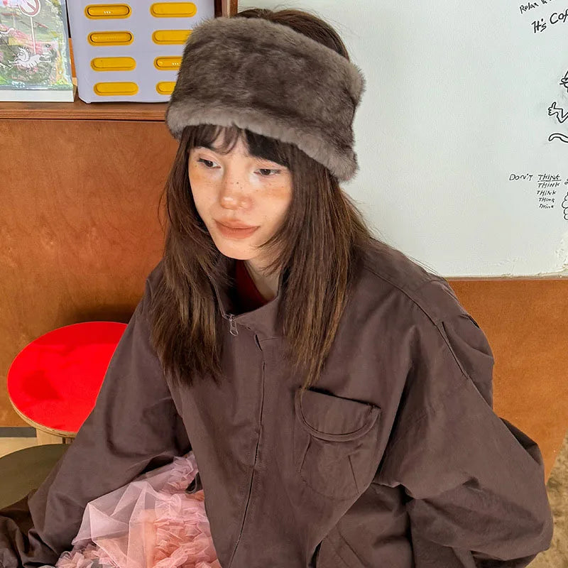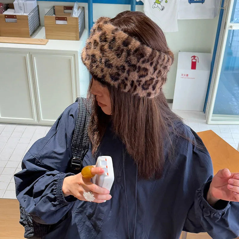 Daiiibabyyy  Hat Hairband Imitation Mink Fur Warm Headband Leopard Print Soft Retro Spicy Girl With A Fashionable Personality Wide Headband