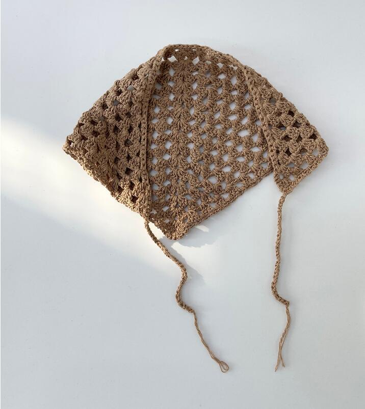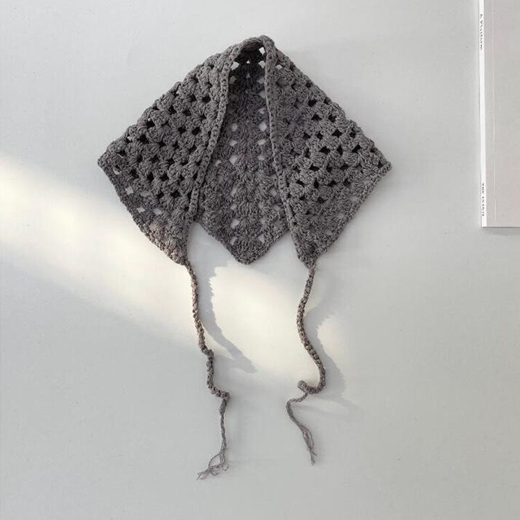 Daiiibabyyy Ins Women Triangle Bandanas Turban Crochet Hair Scarf Hairband Knitted Hair Kerchief Tie Back Boho Head Wrap for Women
