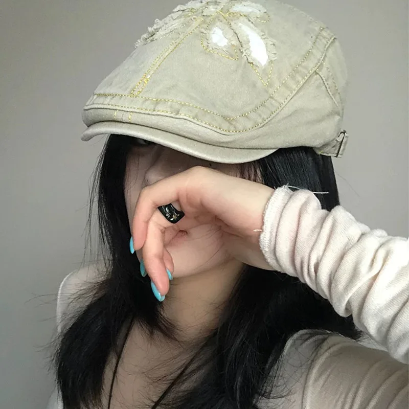 Daiiibabyyy Japanese Retro Street Grinding Design Forward Hat Men and Women Spring and Summer Short Brim Literary and Artistic Painter Cap