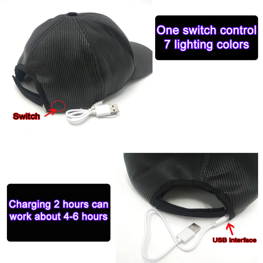 Daiiibabyyy LED Fiber Lighting Baseball Cap Outdoor Sun Protection Performance Cap Fashion Trend Leisure For Night Light Party Glowing Hat