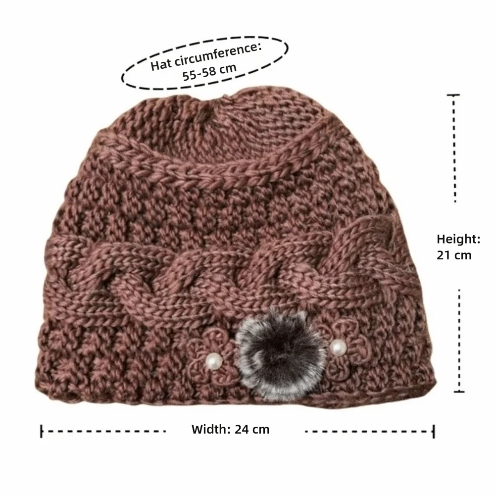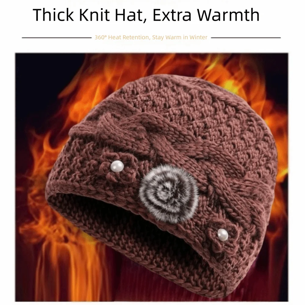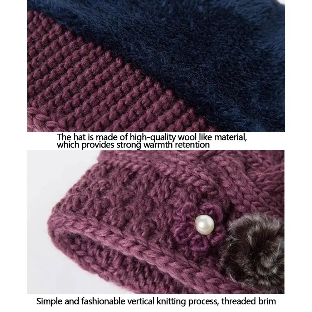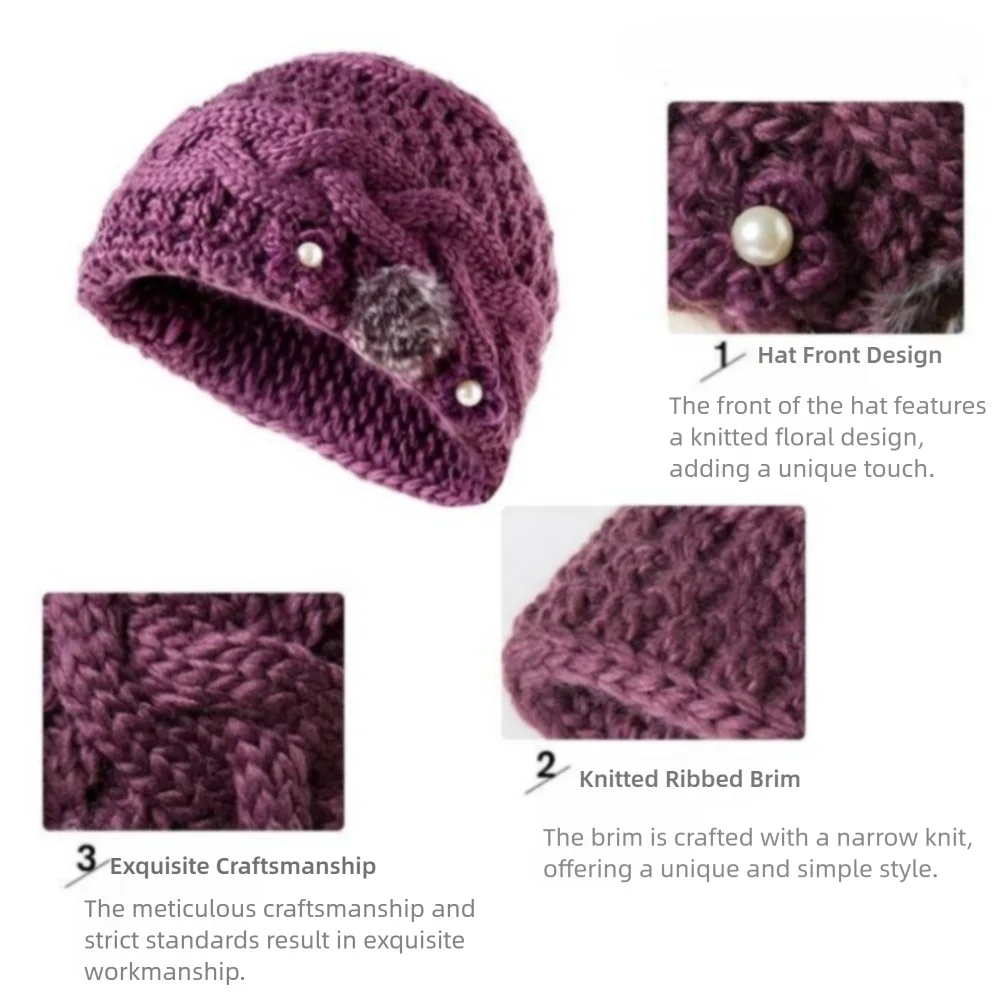 Daiiibabyyy New Knitted Warm Hat Thickned Windproof Pullover Hat Floral Embroidery Cold Proof Earmuffs Cap Winter