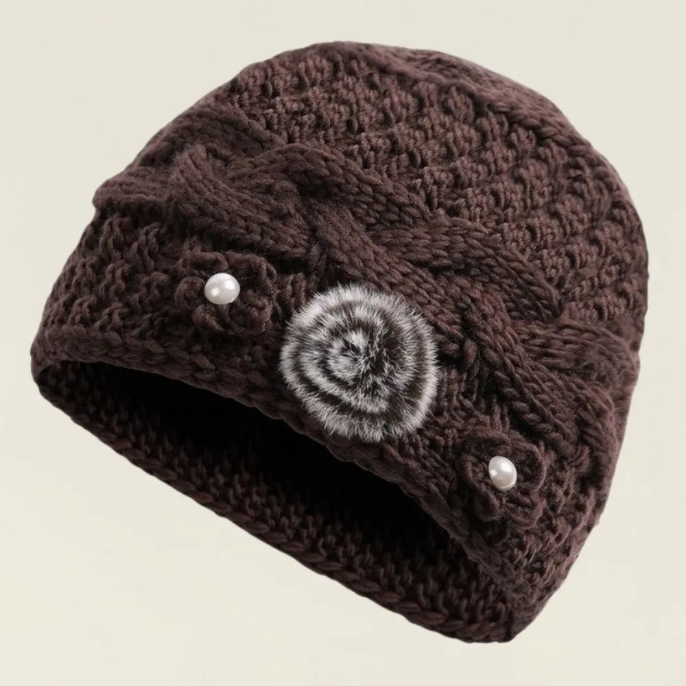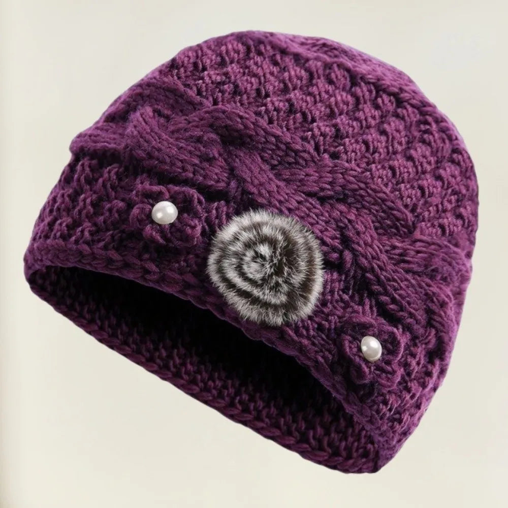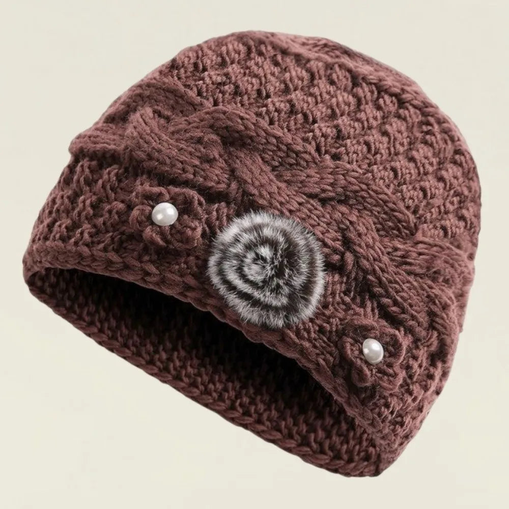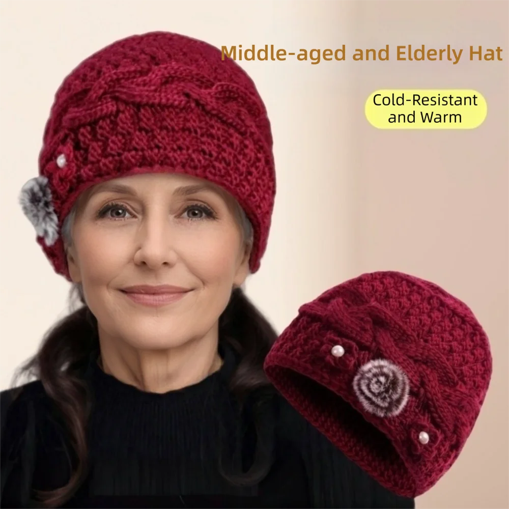 Daiiibabyyy New Knitted Warm Hat Thickned Windproof Pullover Hat Floral Embroidery Cold Proof Earmuffs Cap Winter