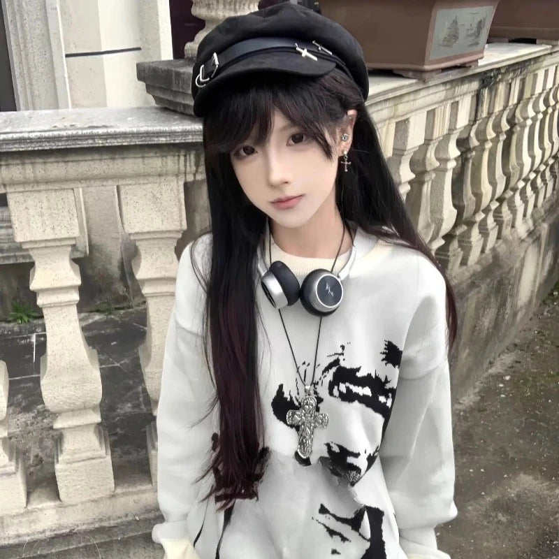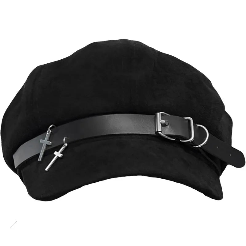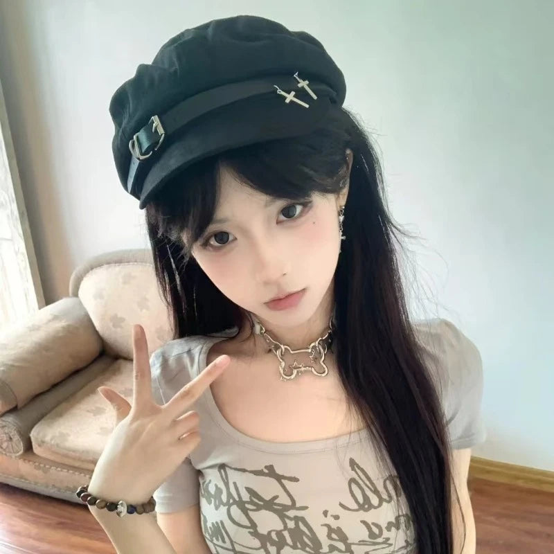 Daiiibabyyy  Subculture Cross Pendant Berets Cap Y2K Black Cotton Painter Hat Gothic Lolita Beret Hat Caps Harajuku Deco Accessories Japanese