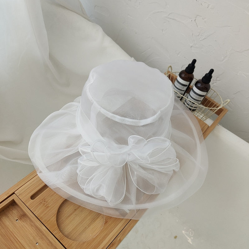 Daiiibabyyy Sun Hat Organza Ladies Yellow Flower Elegant Church Hats Women Summer Spring Stylish Lightweight Hawaiian Beach Hat