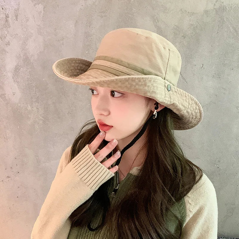 Daiiibabyyy Western Cowboy Hat Women Big Eaves Camping Bucket Hat Sun Protection Sun Outdoor Western Tourism Mountaineering Hiking Hat Men