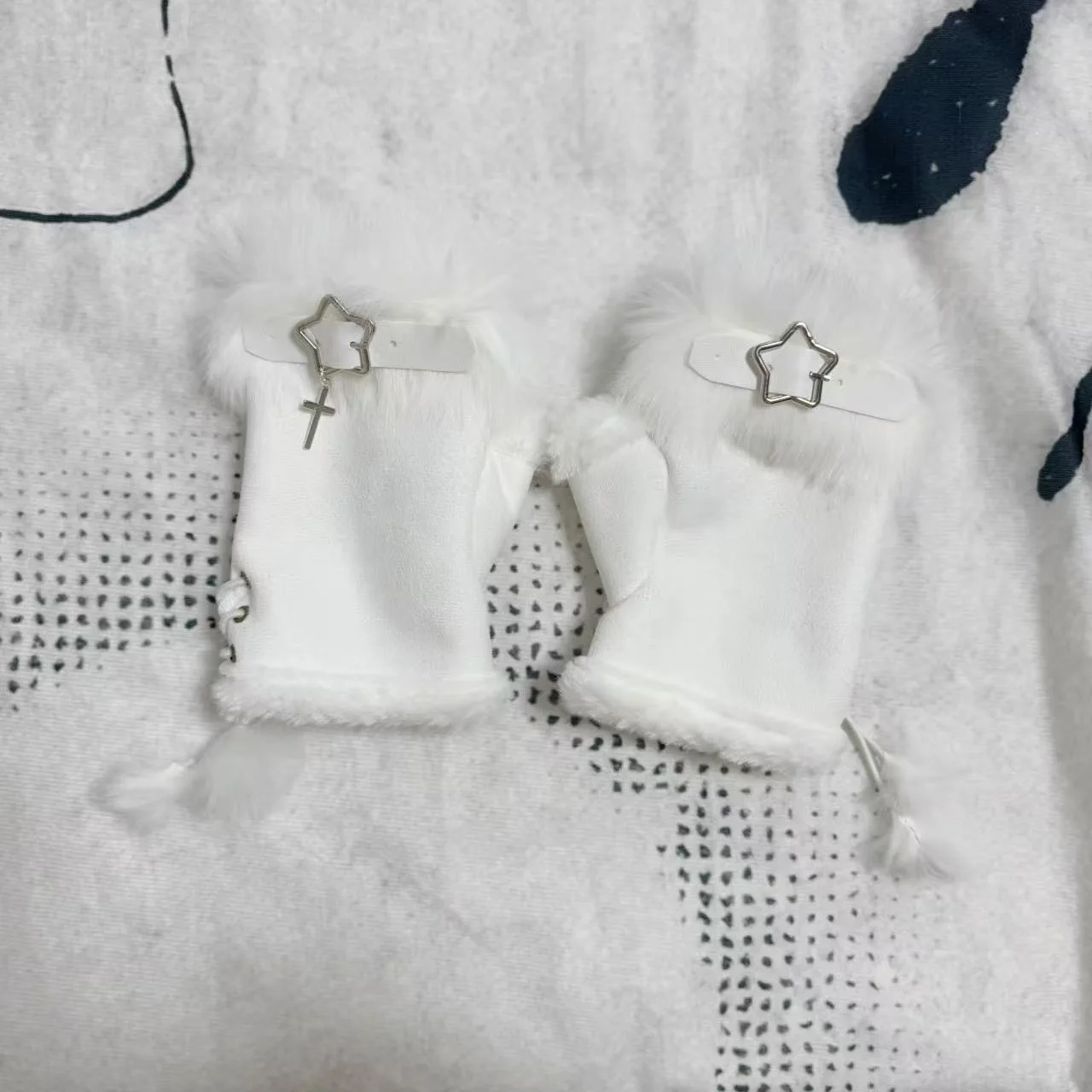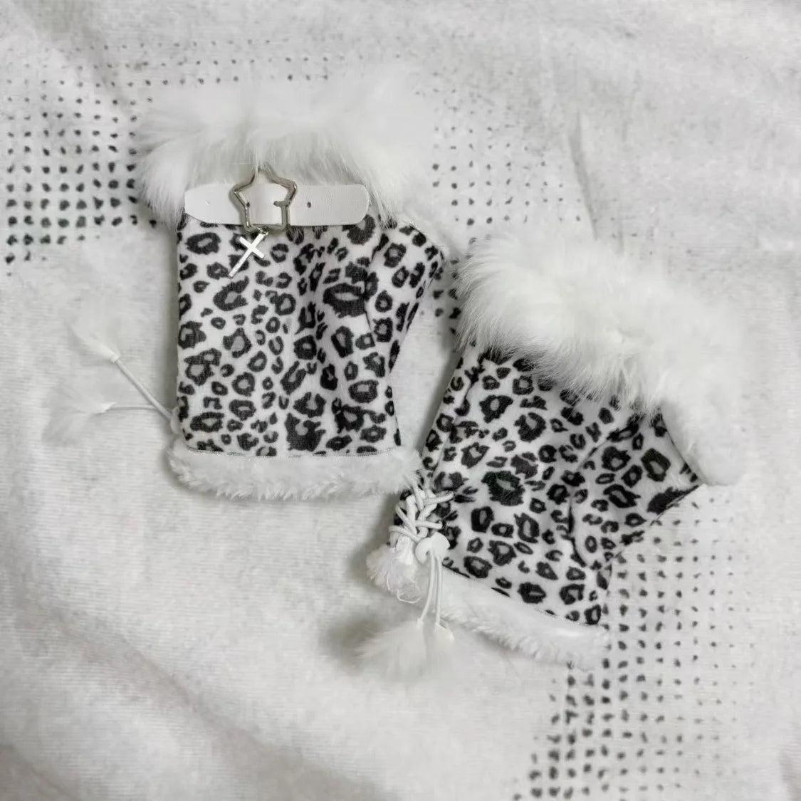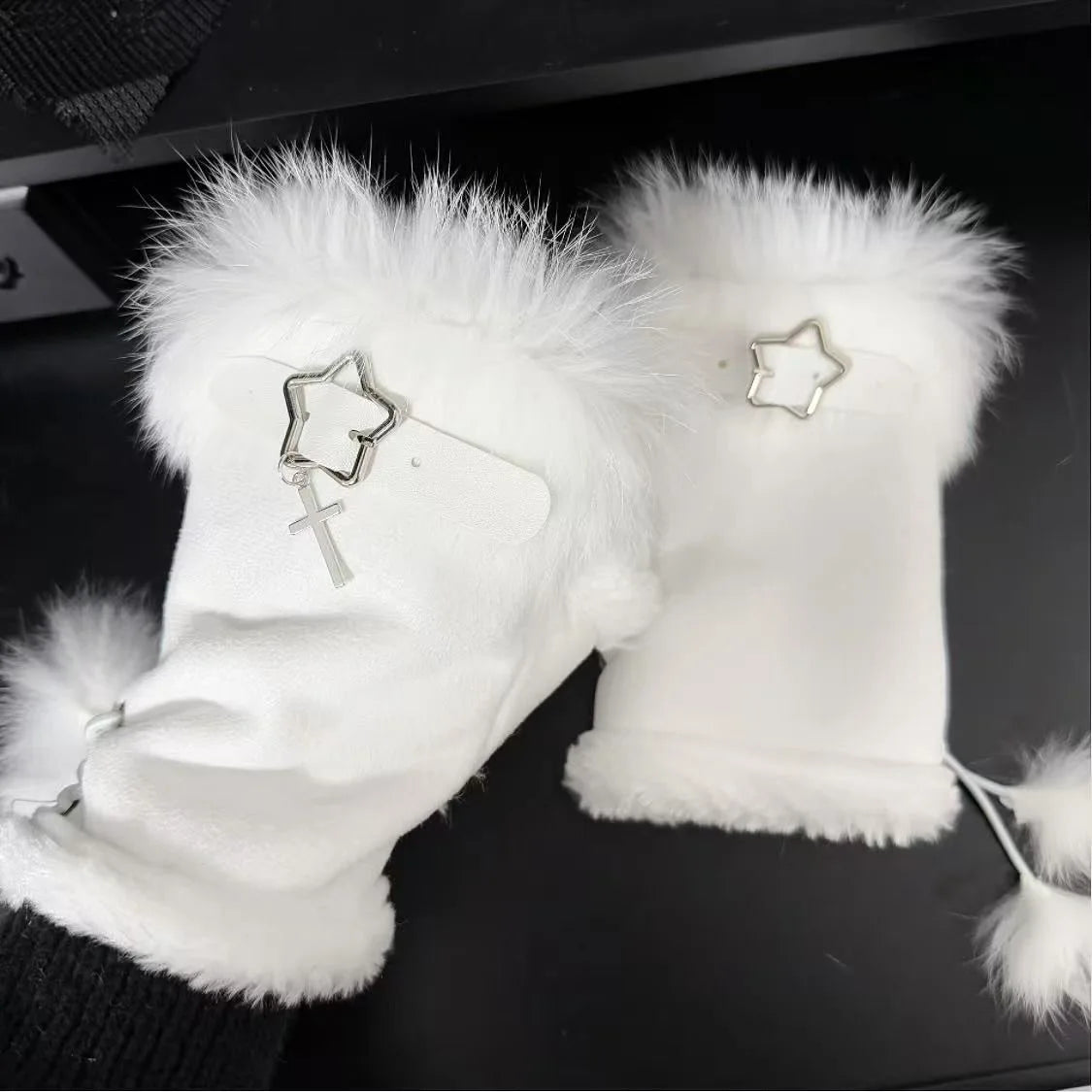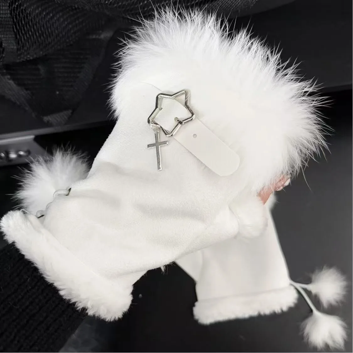 Daiiibabyyy Winter Rabbit Fur Half Finger Sexy Leopard Gloves Fur Suede Adjustable Design Fingerless Y2K Gloves Padded Thickened Outdoor