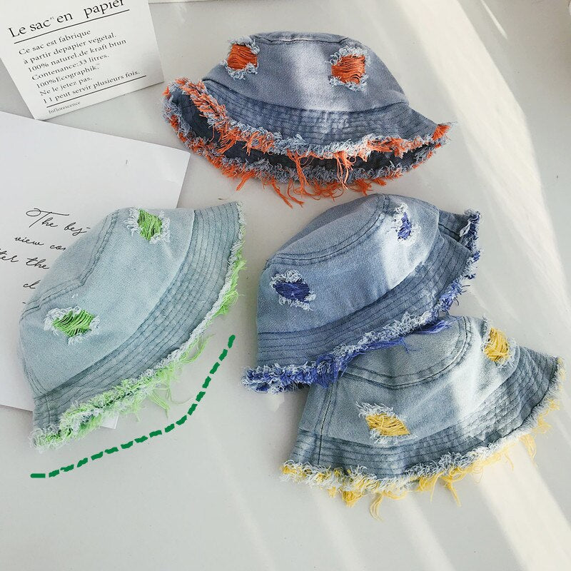 Fashion Bucket Hat for Children Outdoor Sports Hip Hop Cap Washed Denim Summer Cotton Fishing Sun Hat Panama For Boys Girls