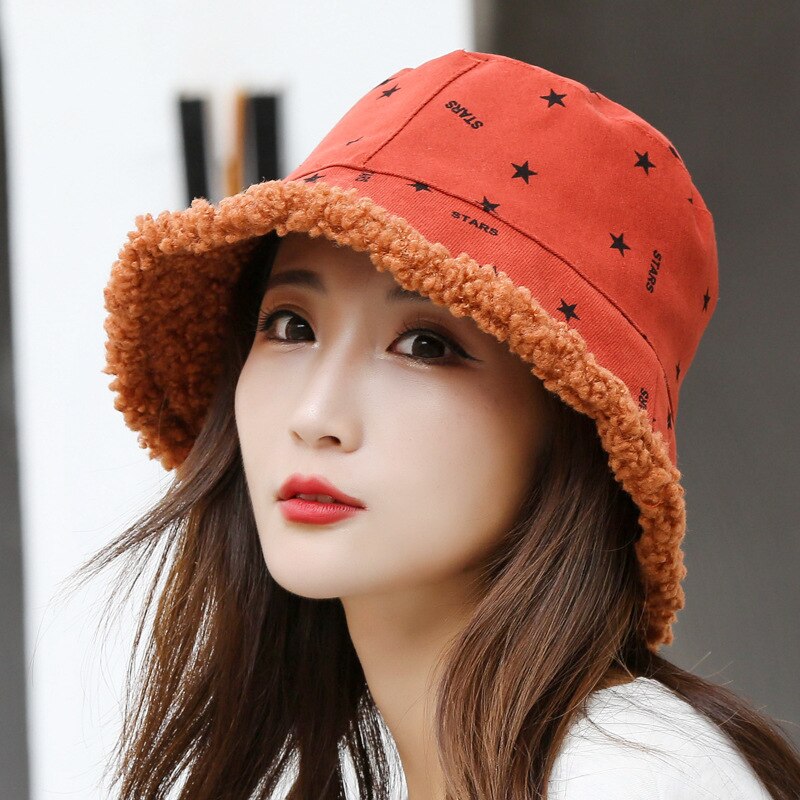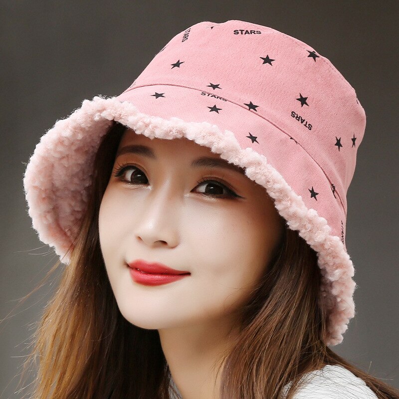 Fisherman Cap Women's Winter Hat 2022 New Women Warm Bucket Hats Lady Dots Star Print Outdoor Panama Hat for Women зима