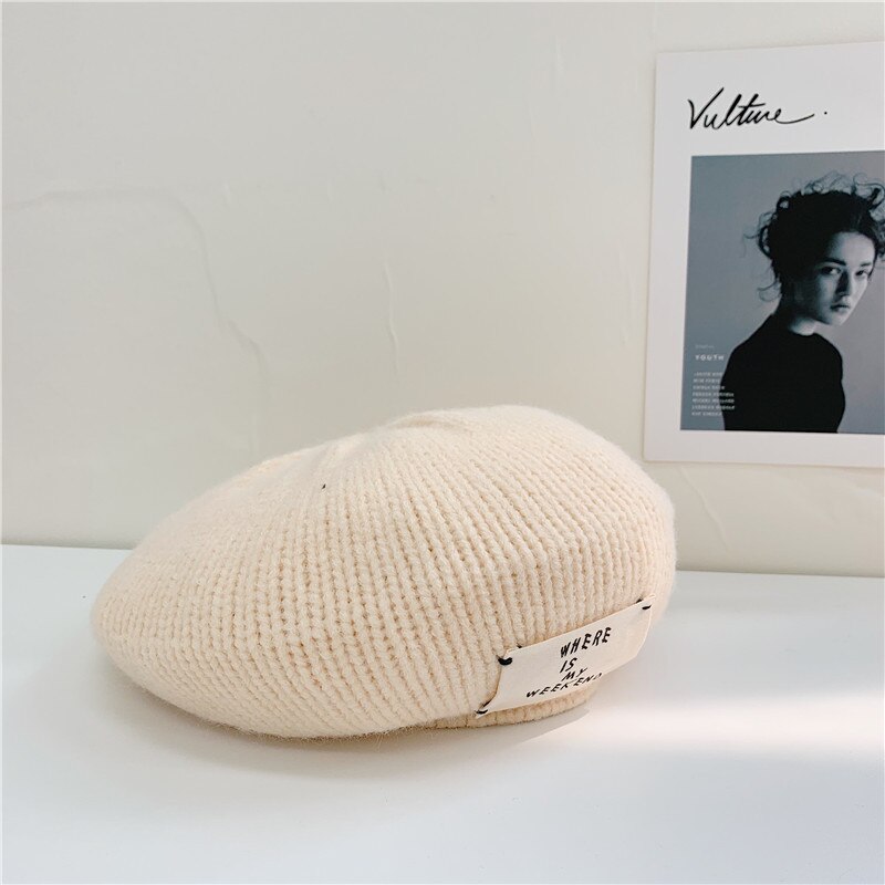 Harajuku Kitted Beret Hats Women Girl's Vintage Artist Painter Hat Winter Autumn Soft Wool Octagonal cap adjust