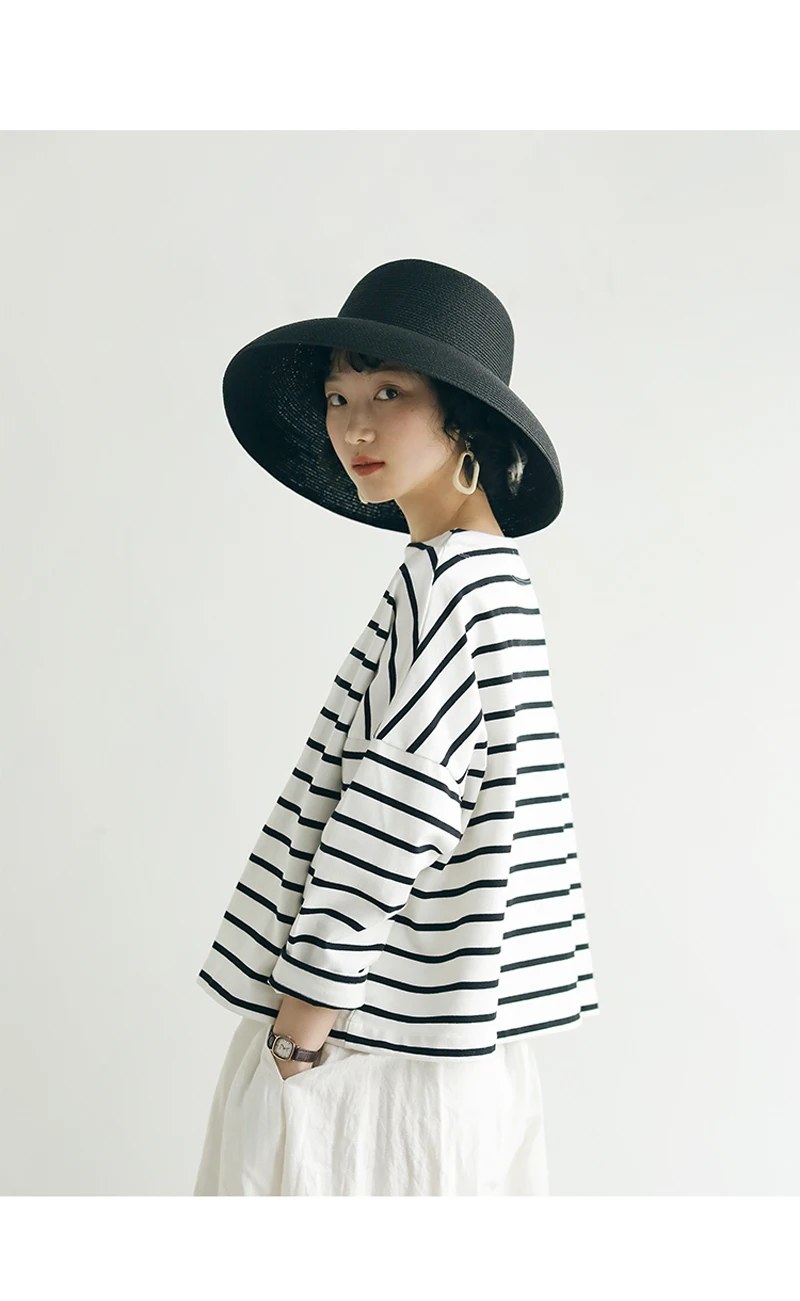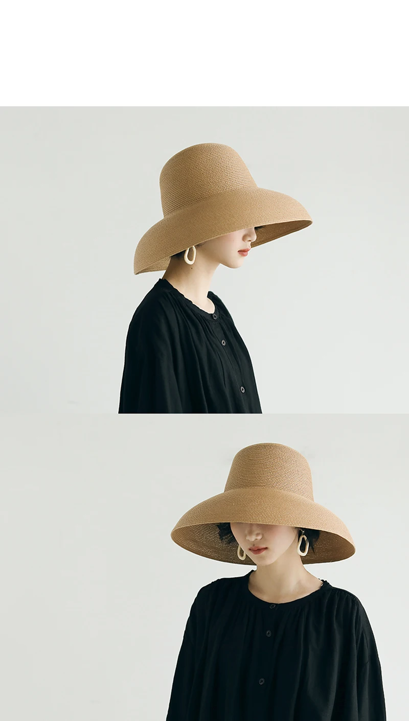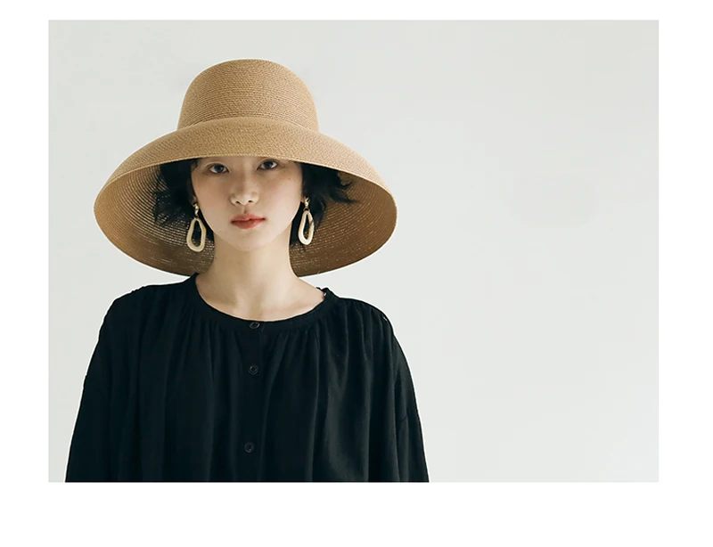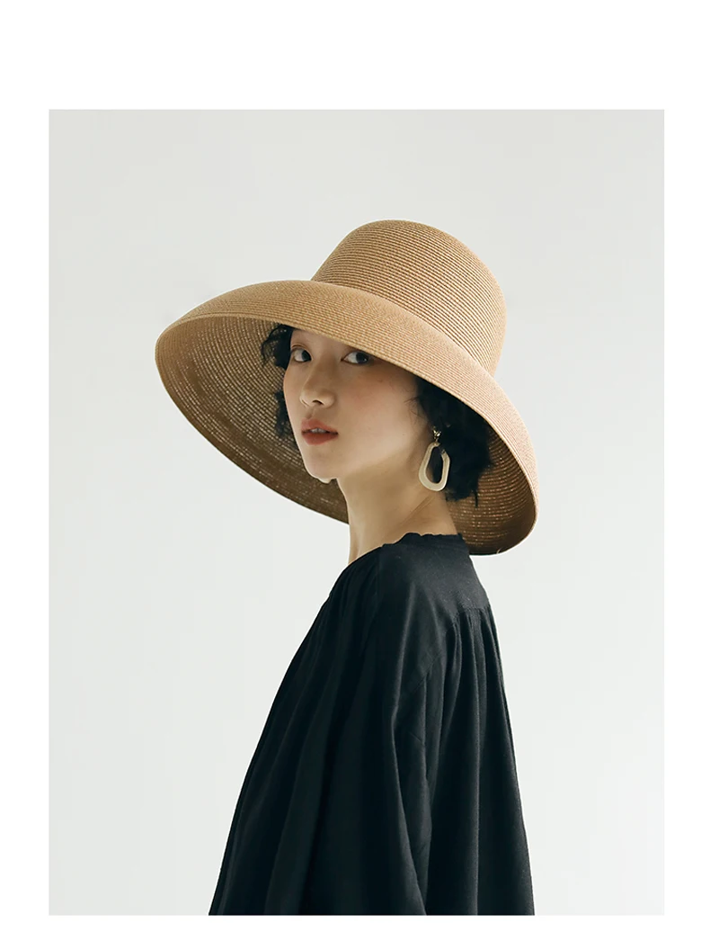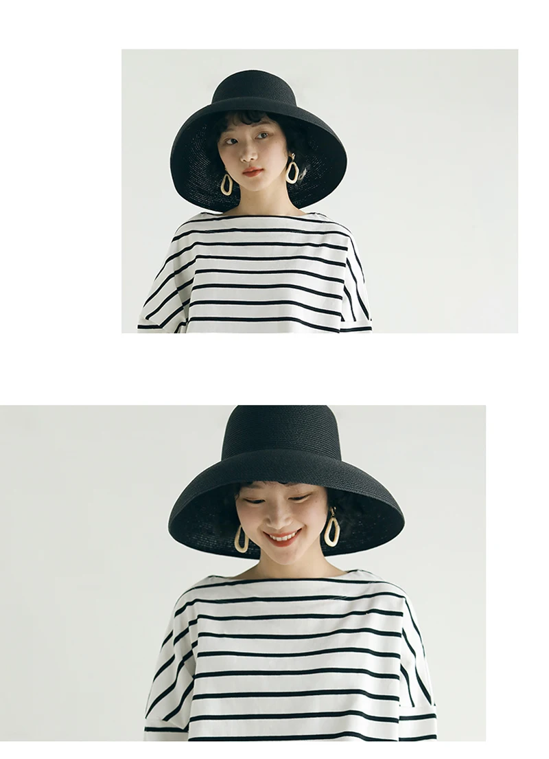 Daiiibabyyy Handmade Women Summer Sun Hat Big Eaves Beach Japanese Hepburn Style Holiday Fold Fisherman Cap Temperament Flat