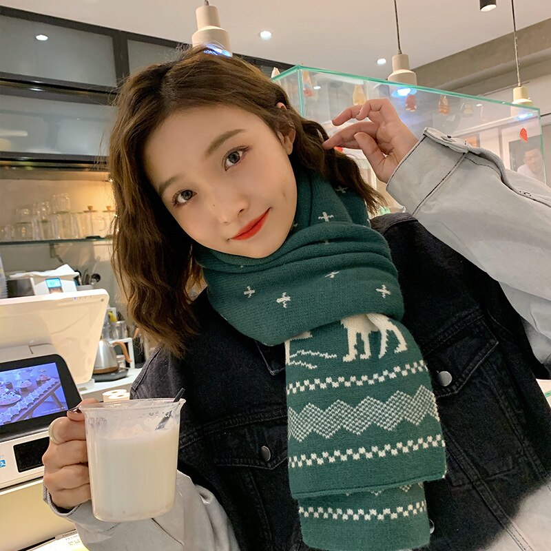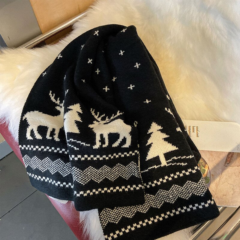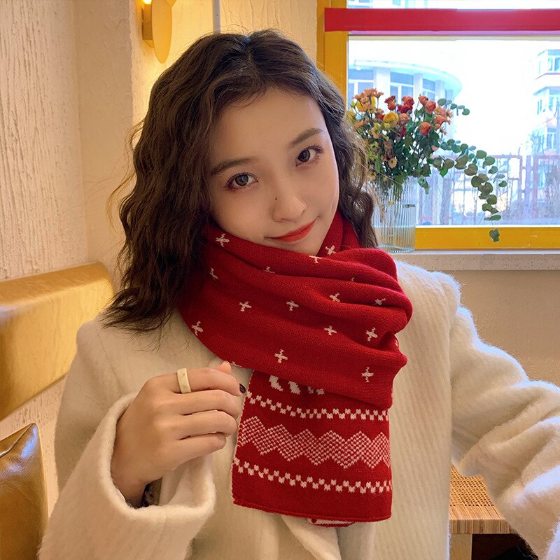 Red Christmas Elk Snowflake Scarf Women's Scarf Winter Female Autumn and Winter Warm Knitted Wool Scarf шарф женский