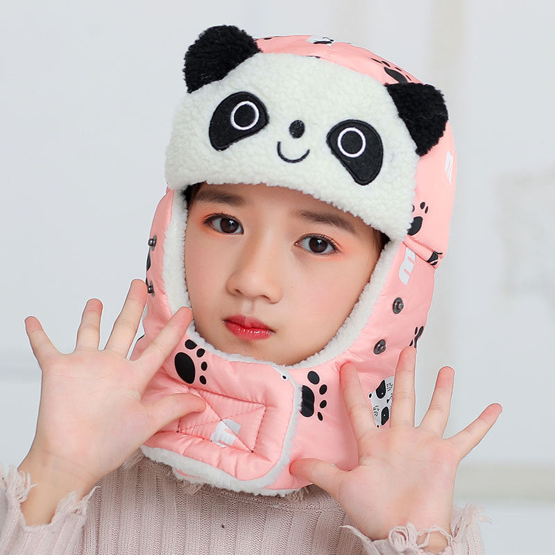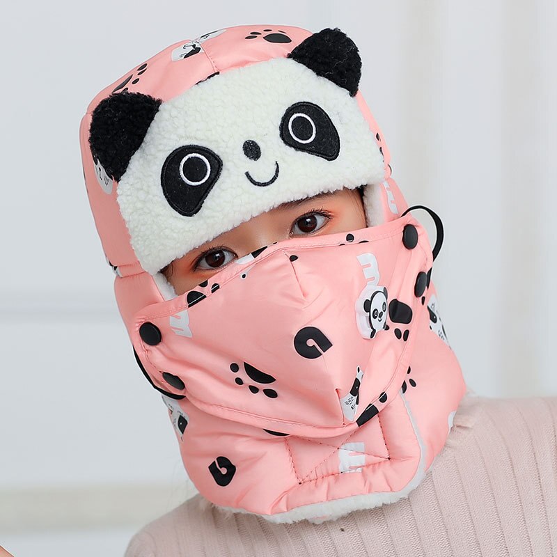 Winter Bomber Hats for Girls Boy Winter Hats Cap with Scarf Neck Masks Animal Cotton Snow Cap Earflaps Russian Hat Mask Warm
