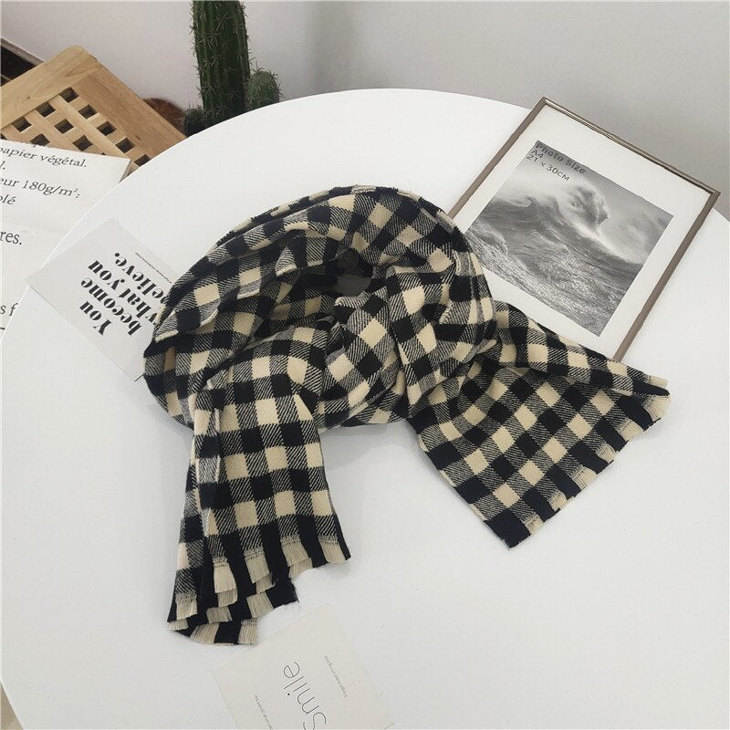 Women 100% Cashmere Scarf Classic Plaid Luxury Brand Woman Scarf Winter Literary Style Women Long Shawl 70X200 CM Adult